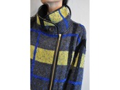 ジャガードで編み込まれた蛍光シャギーヤーンがさりげなく顔を覗かせる独自のチェックテキスタイル。