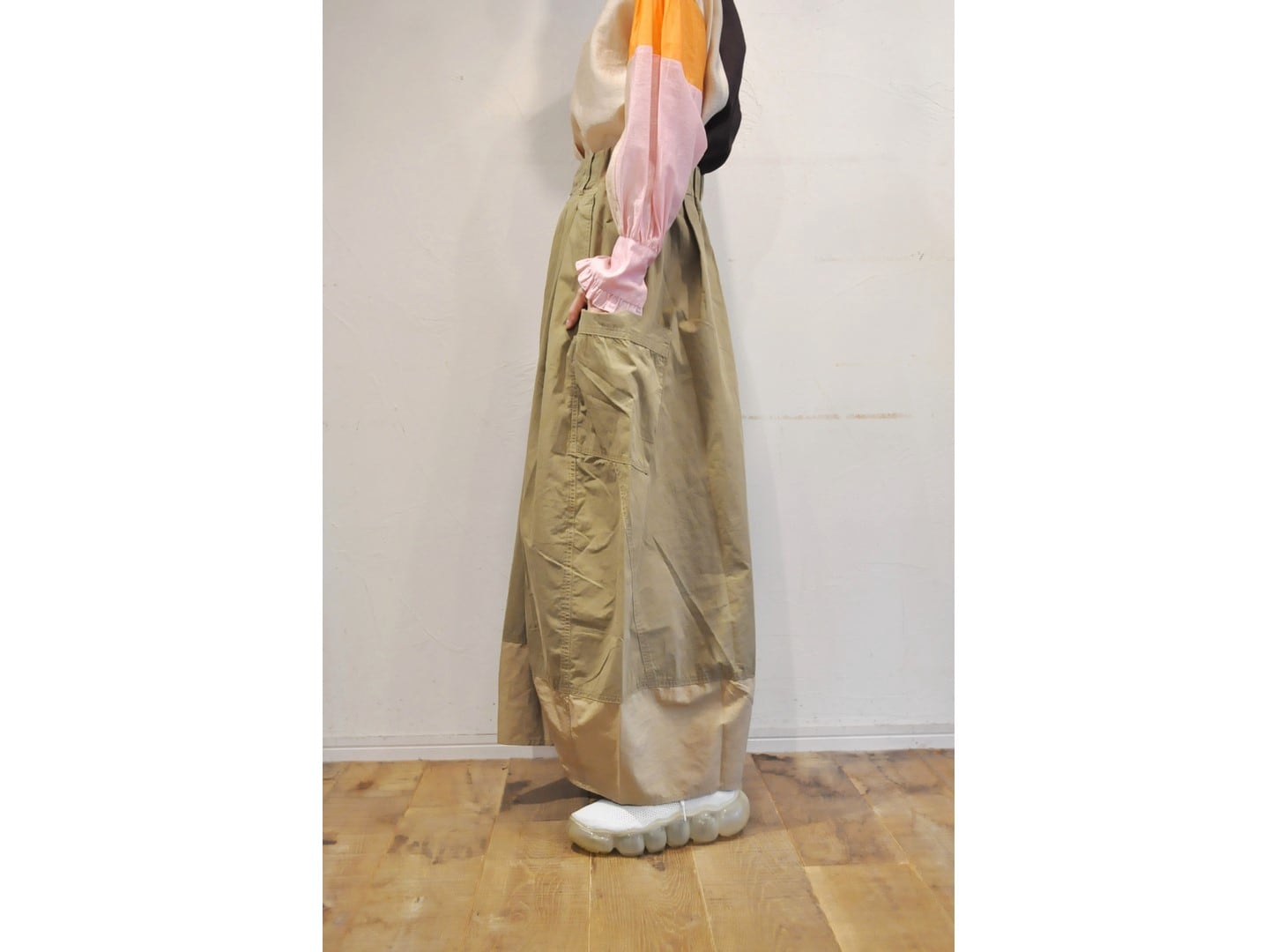 ●ワイドパンツのような立体感、バレルシルエットで魅せるロングスカート。