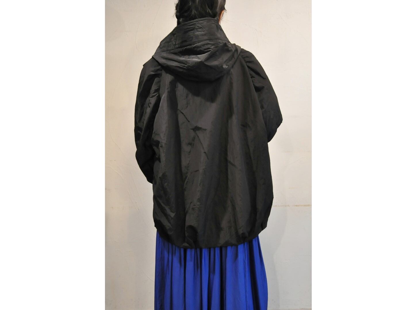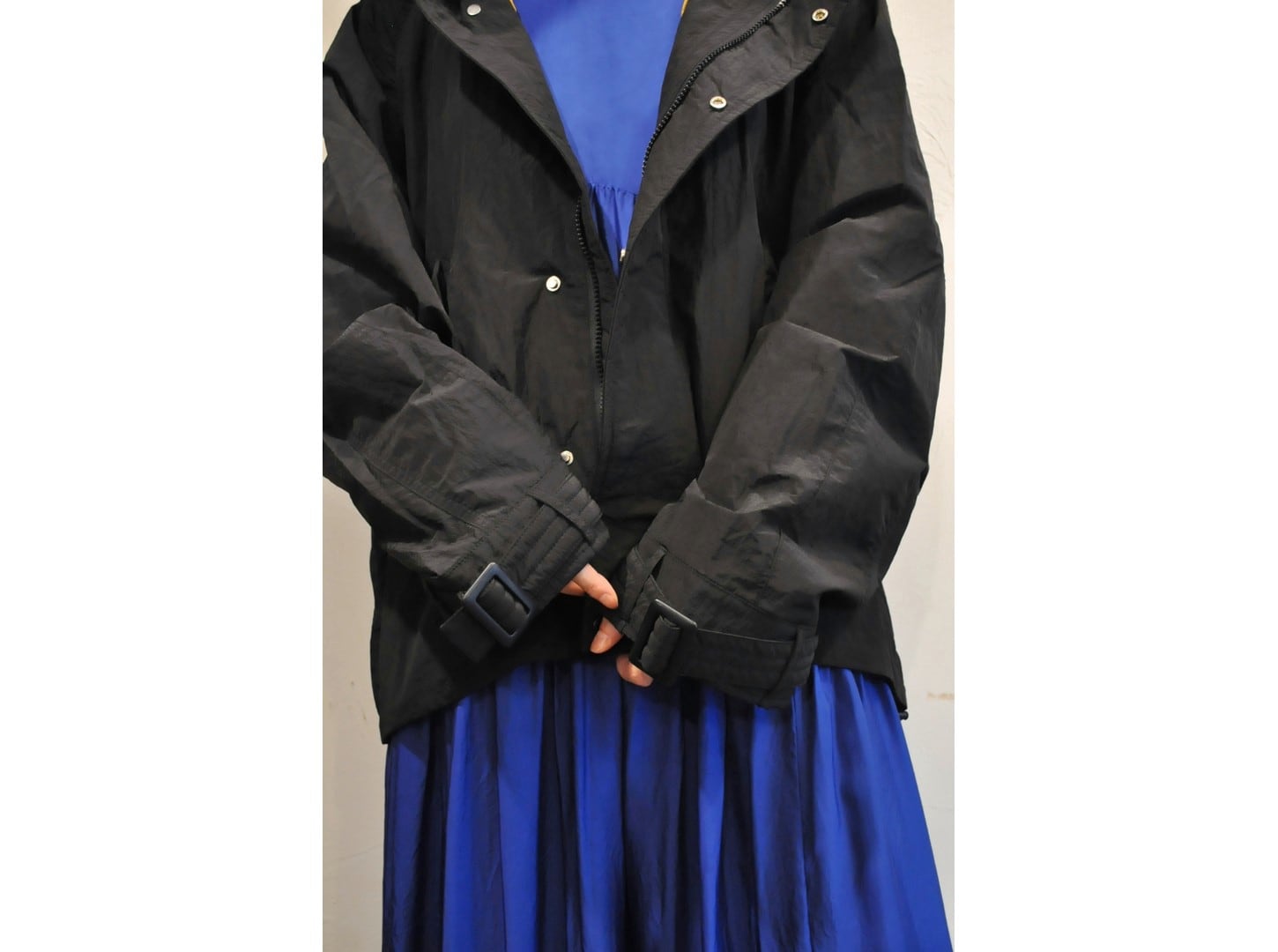 袖や裾にタックやギャザーを効かせ、フード周りも立体的なパターンに仕立てた空気感のあるデザイン。
