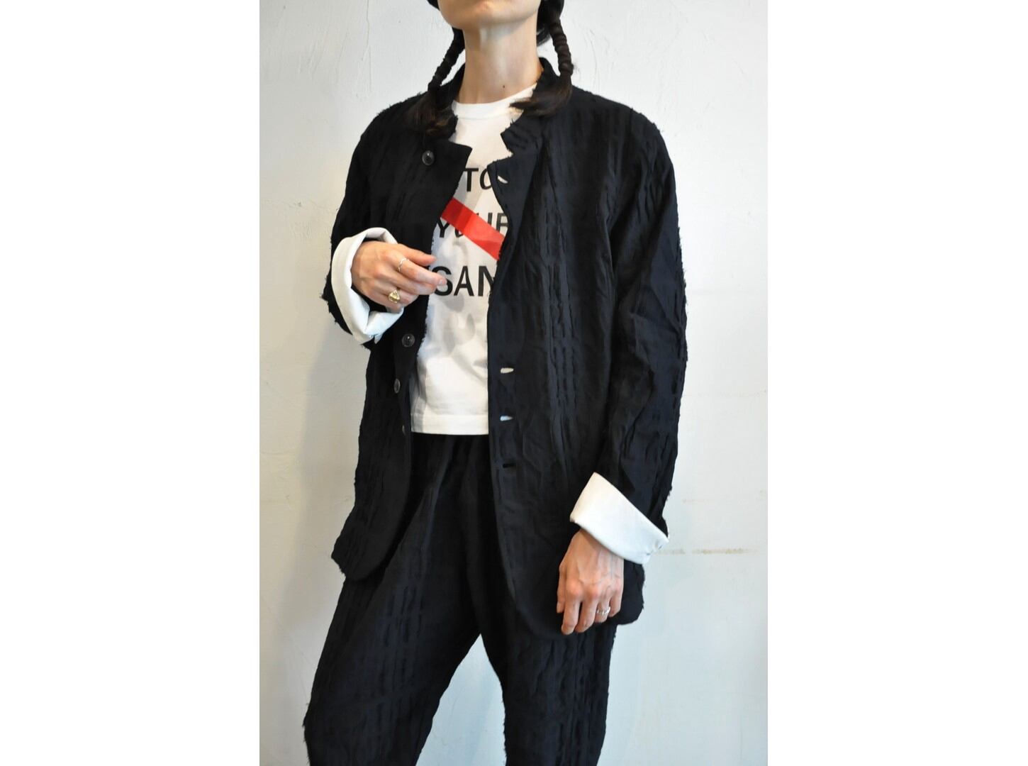 ●異なる縮率の糸を使った、オリジナルチェックのジャガードジャケット。