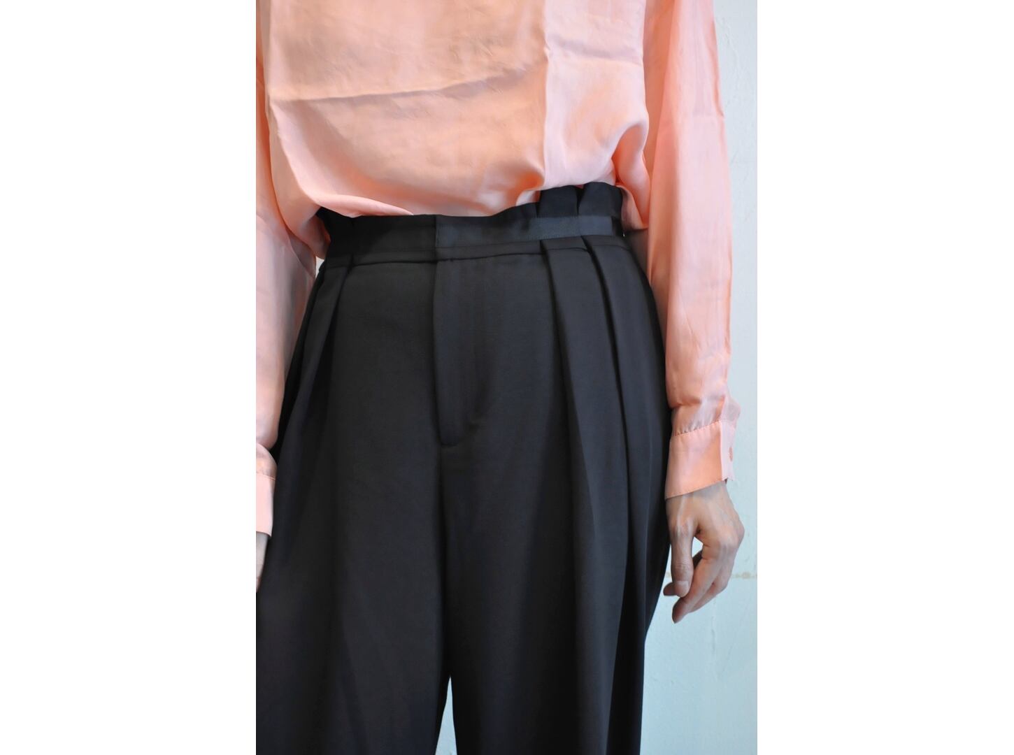 ●配色のグログランテープがウエストにさりげなく効いた、上品さと遊び心を兼ね備えたアイテムです。