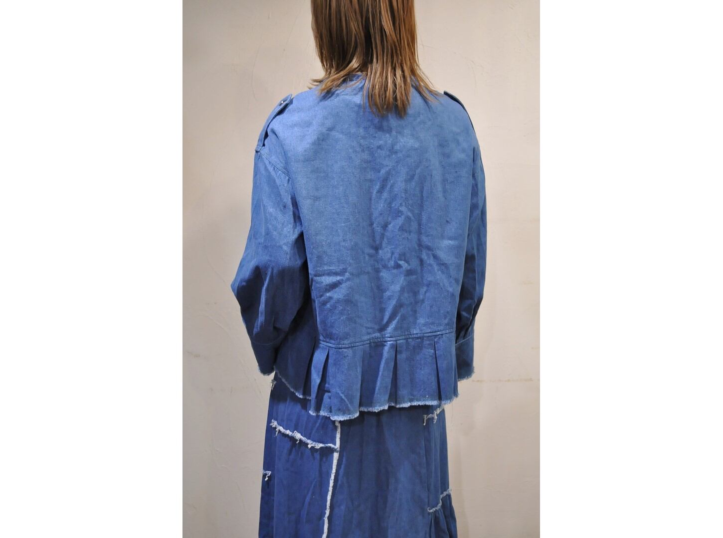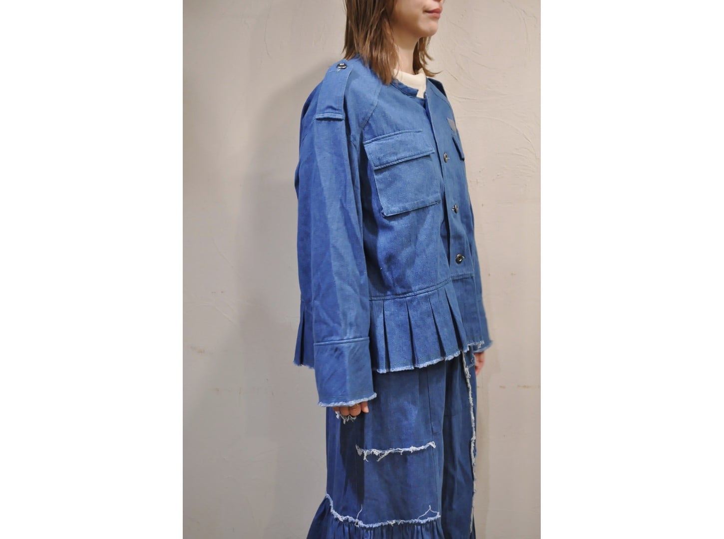 ●ミリタリーアイテムのBDUジャケットをデザインベースに、女性らしさと無骨さを程よくミックスさせたデニムジャケットです。