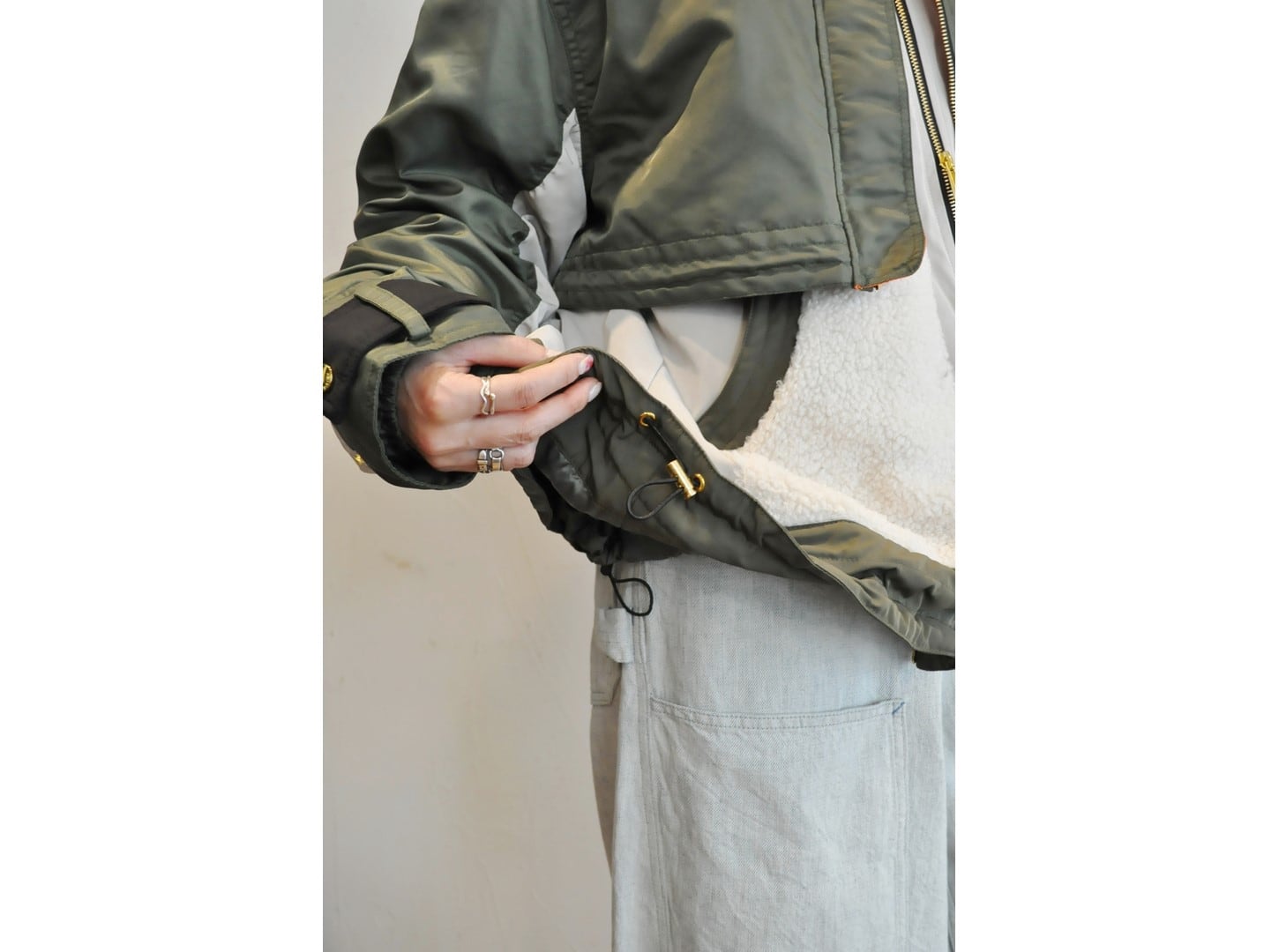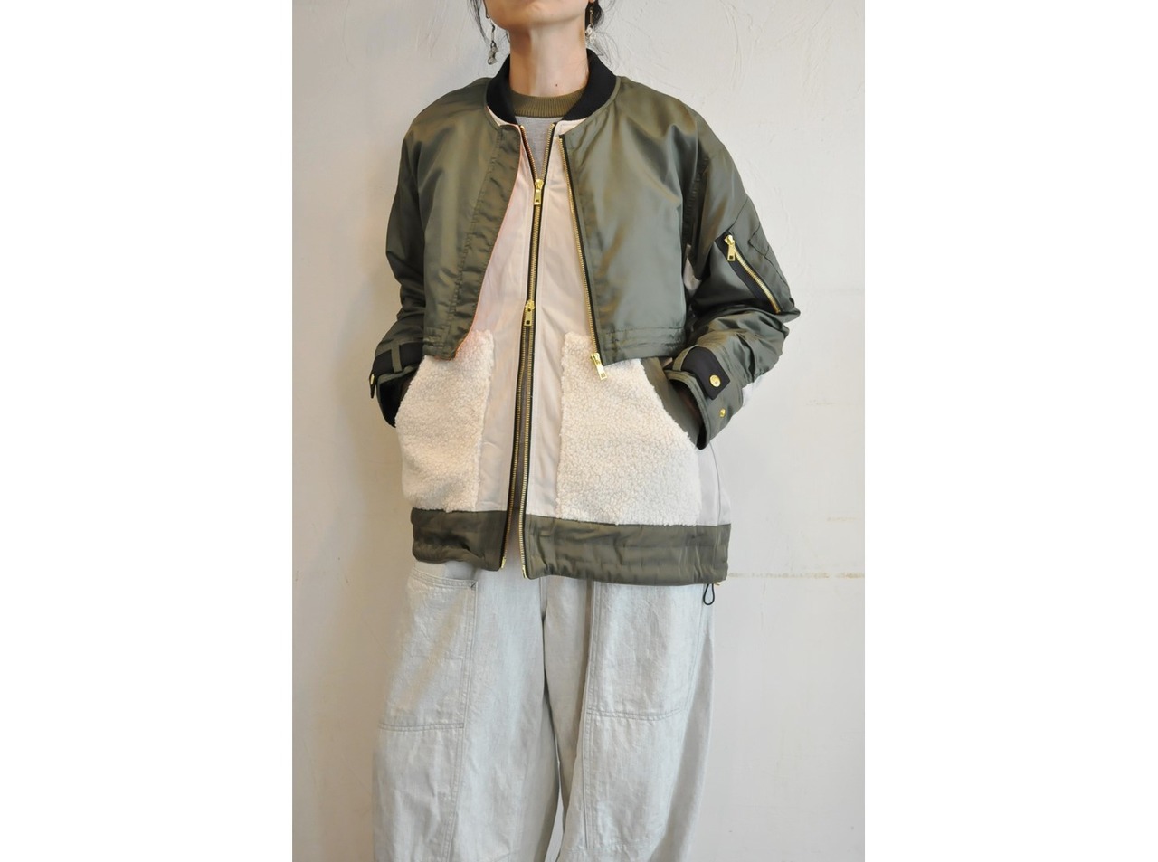 ●MA-1の中にベストがドッキングされているレイヤードブルゾン。