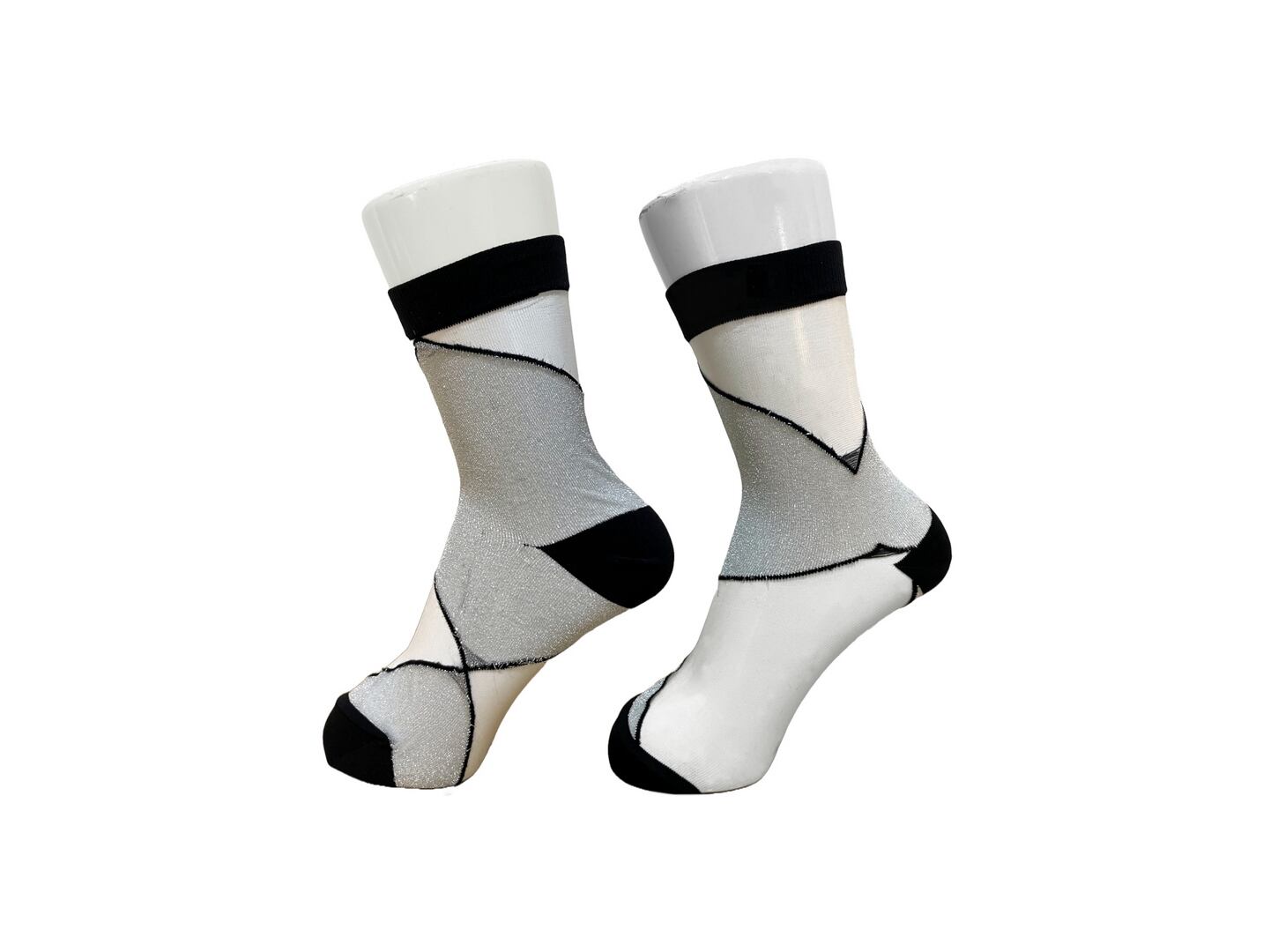 ●ステンドグラスのように部分的にグリッター糸が配色されたシースルーソックス。