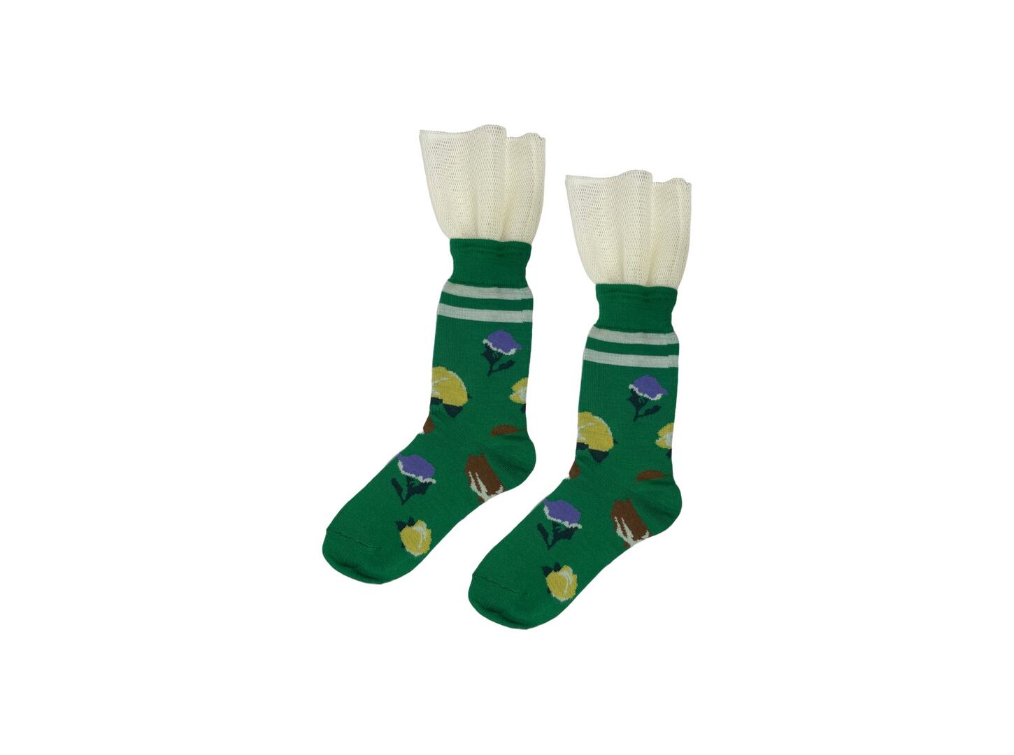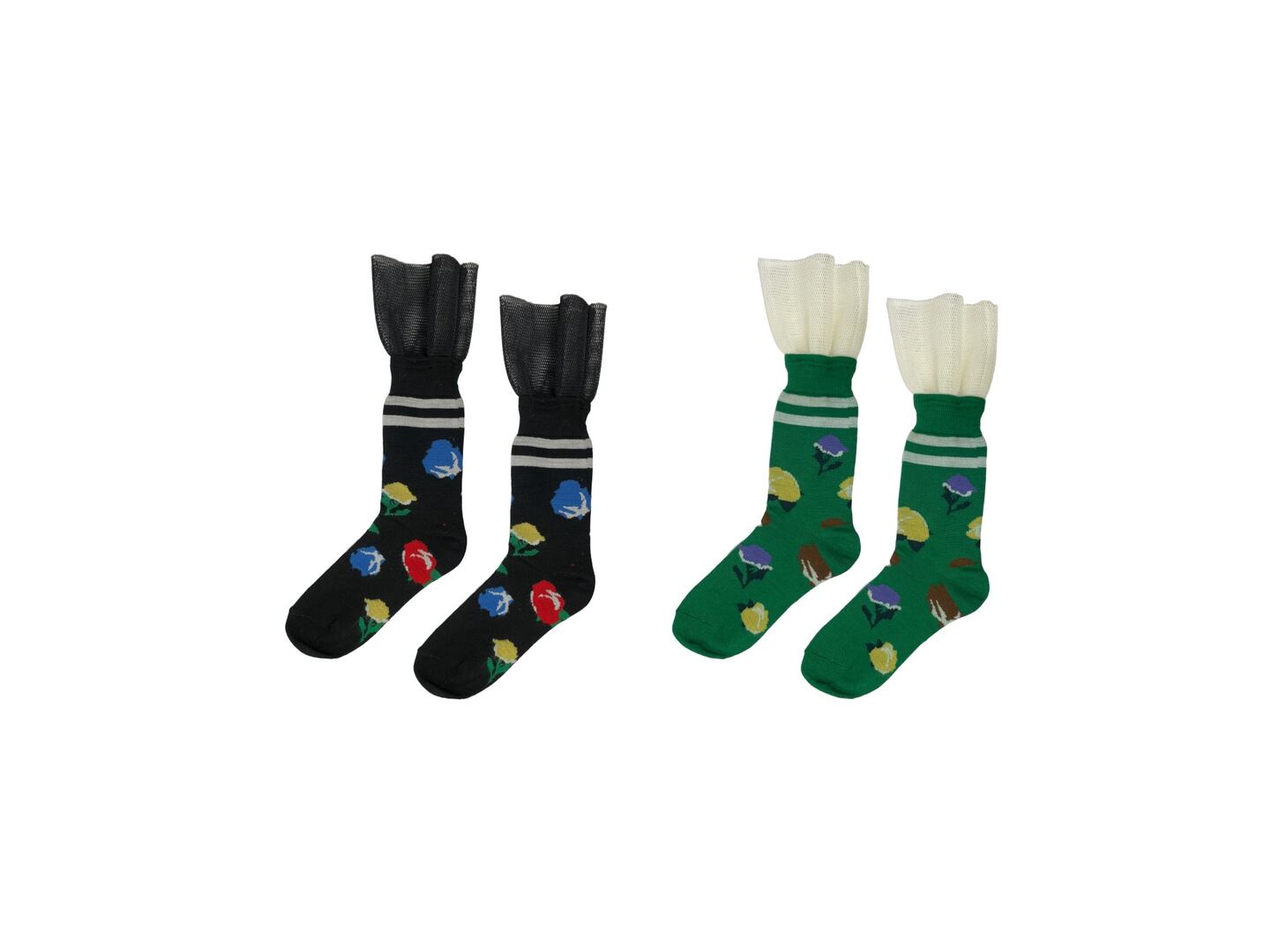 【fakui】mesh frill flower jacquard socks /【ファクイ】メッシュフリルフラワージャガードソックス