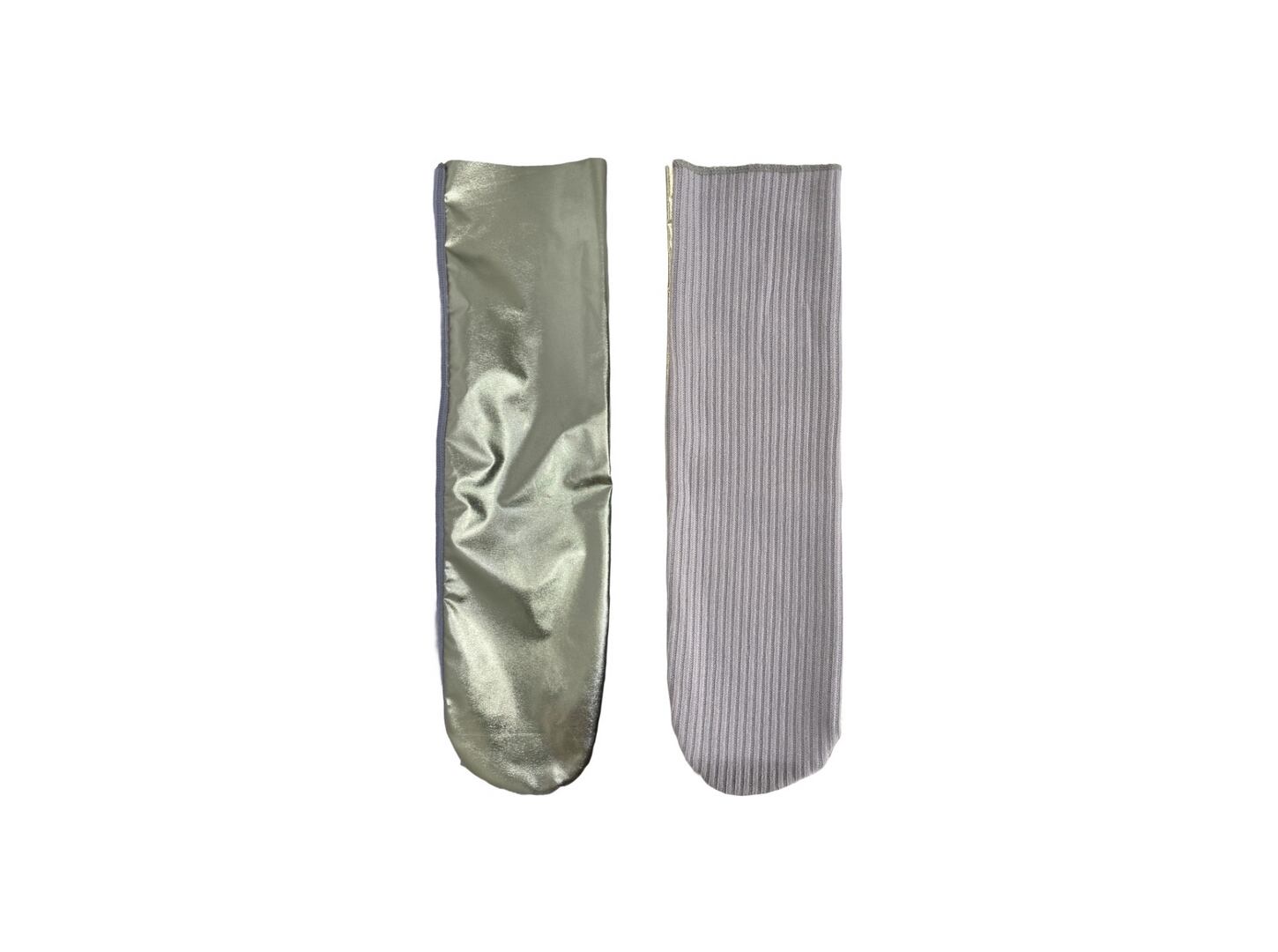 ●落ち着いた光沢のある箔生地とリブ生地を合わせたソックス。