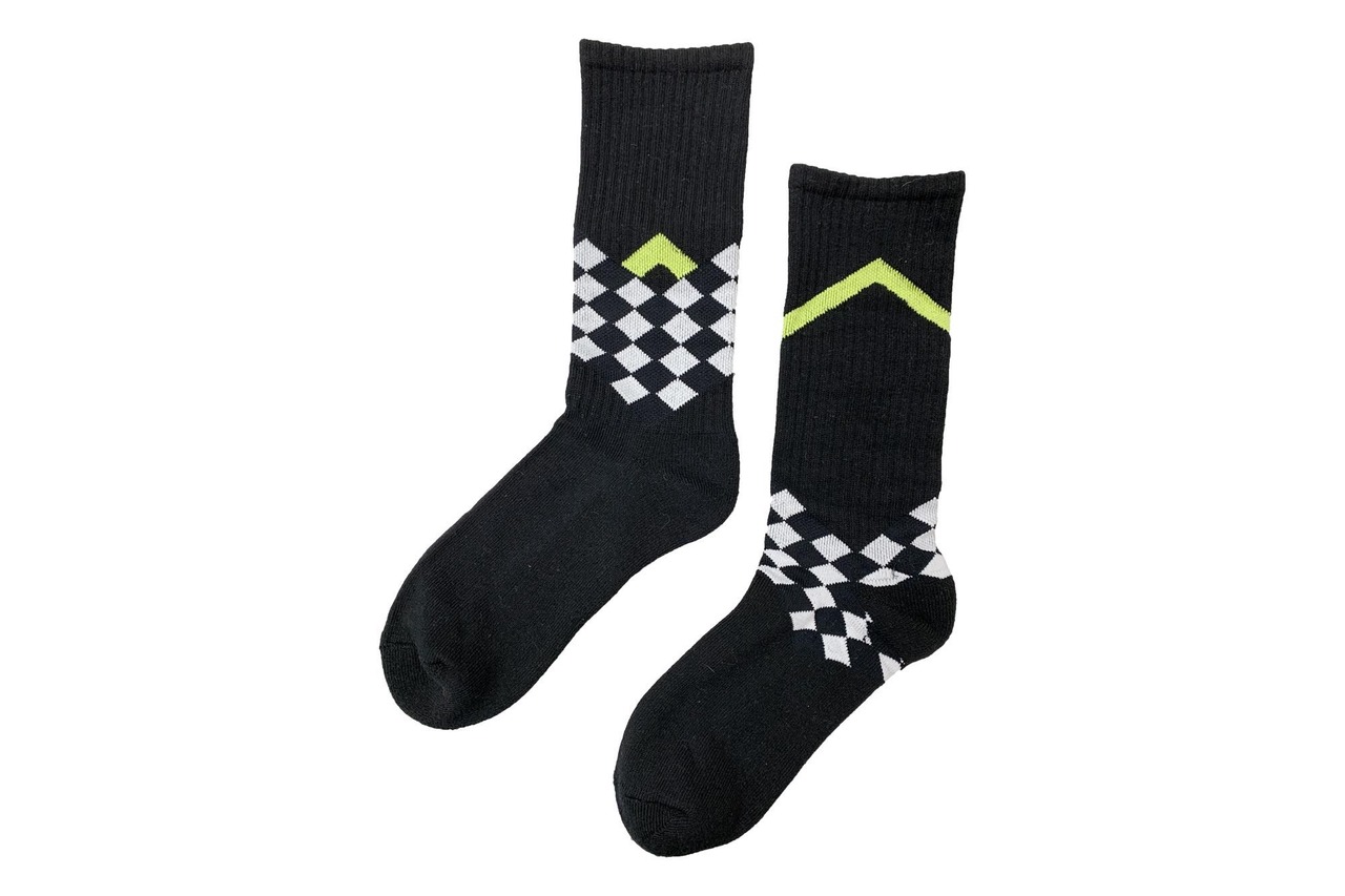 ●チェッカーフラッグのラインが施されたソックス。