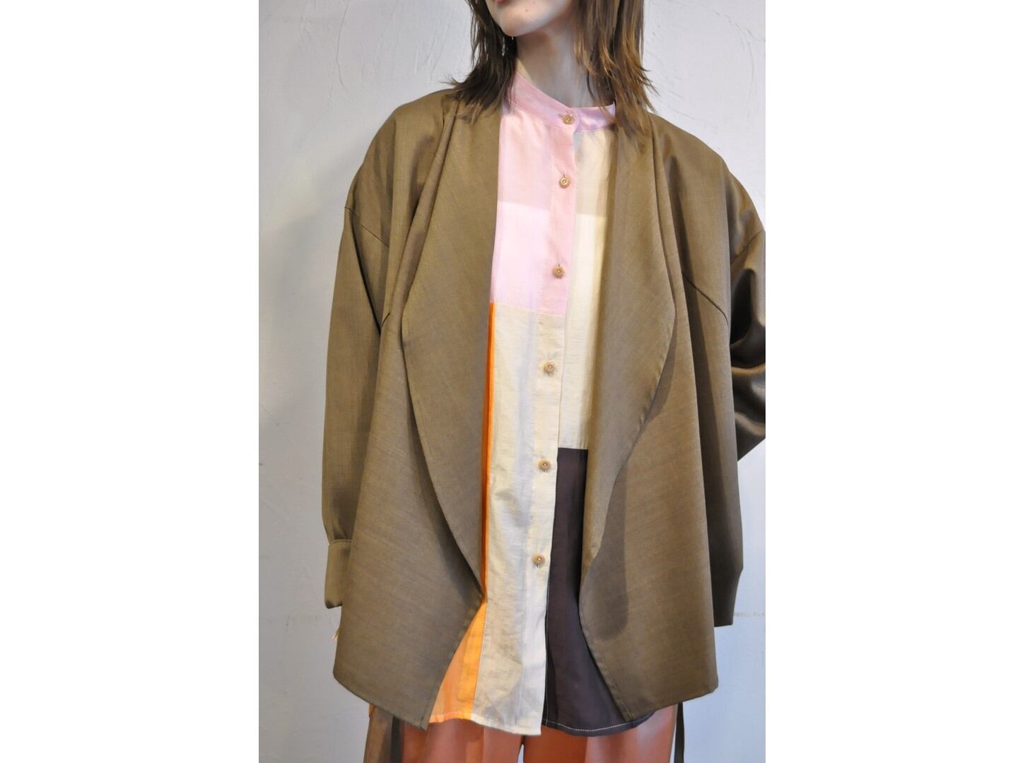 ●ストールをドッキングした様な、なめらかな落ち感のあるジャケット。