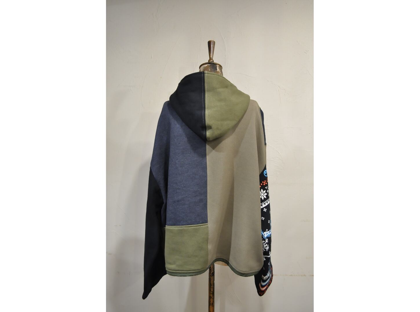 ●古着のスウェットをパターンにはめ再構築して作ったワイドパーカーです。