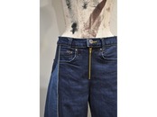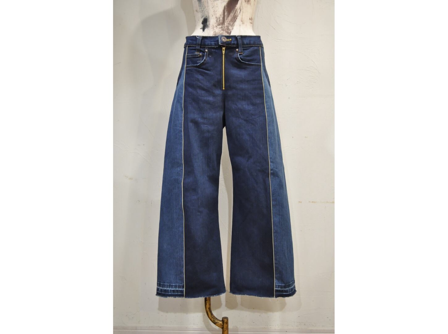 ドッキング部分には程よい光沢感のゴールドのパイピングデープが挟み込まれていて、上品な雰囲気のリメイクデニムです。