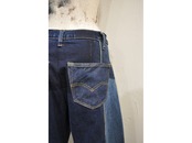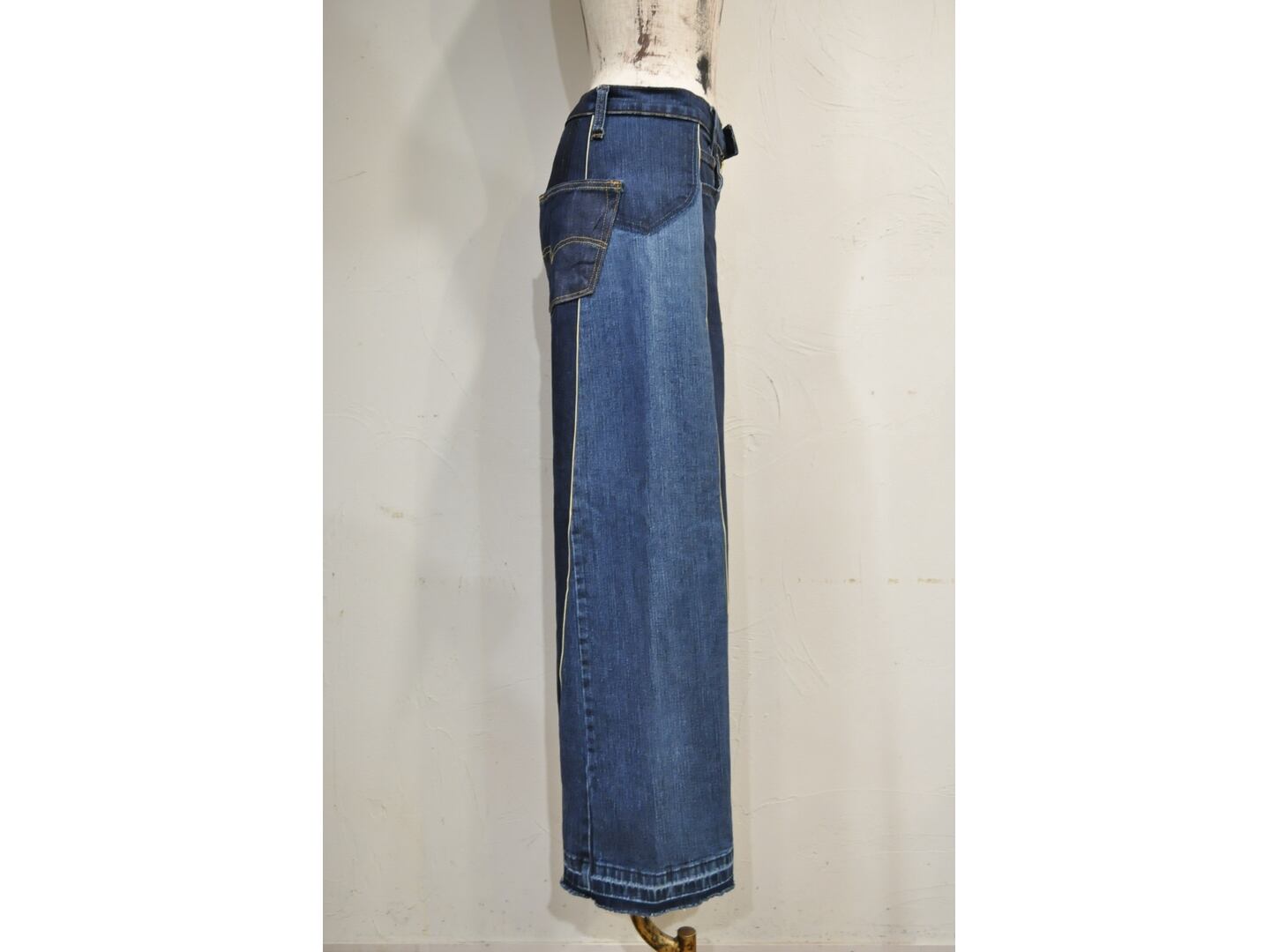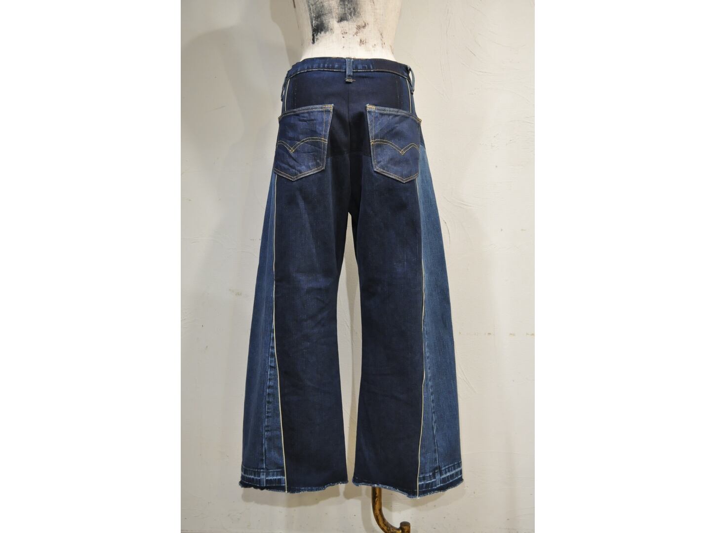 ●古着のデニムを使用し、パターンにはめ2着をドッキングしたデザインです。