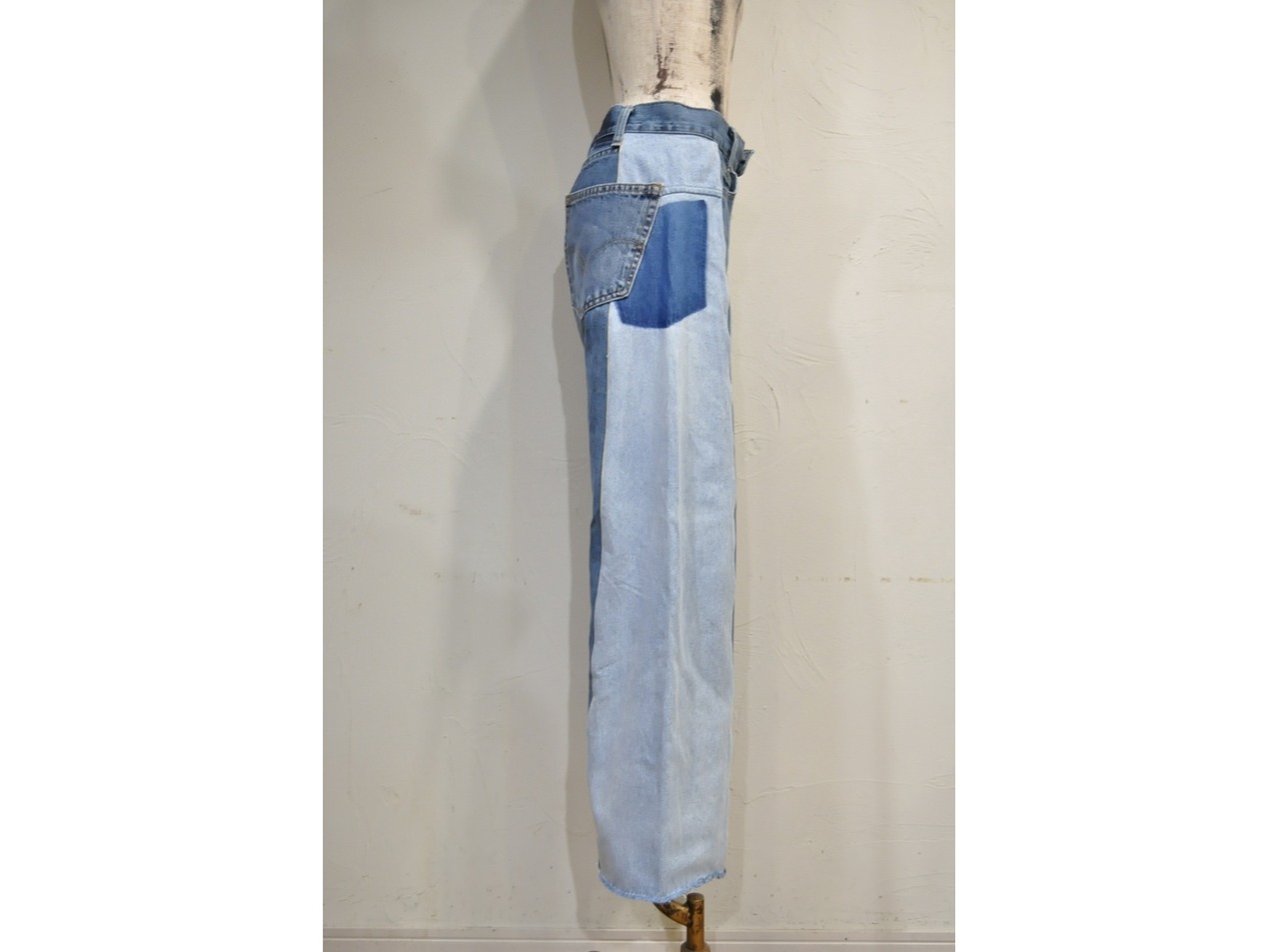 ●古着のデニムを使用し、パターンにはめ2着をドッキングしたデザインです。