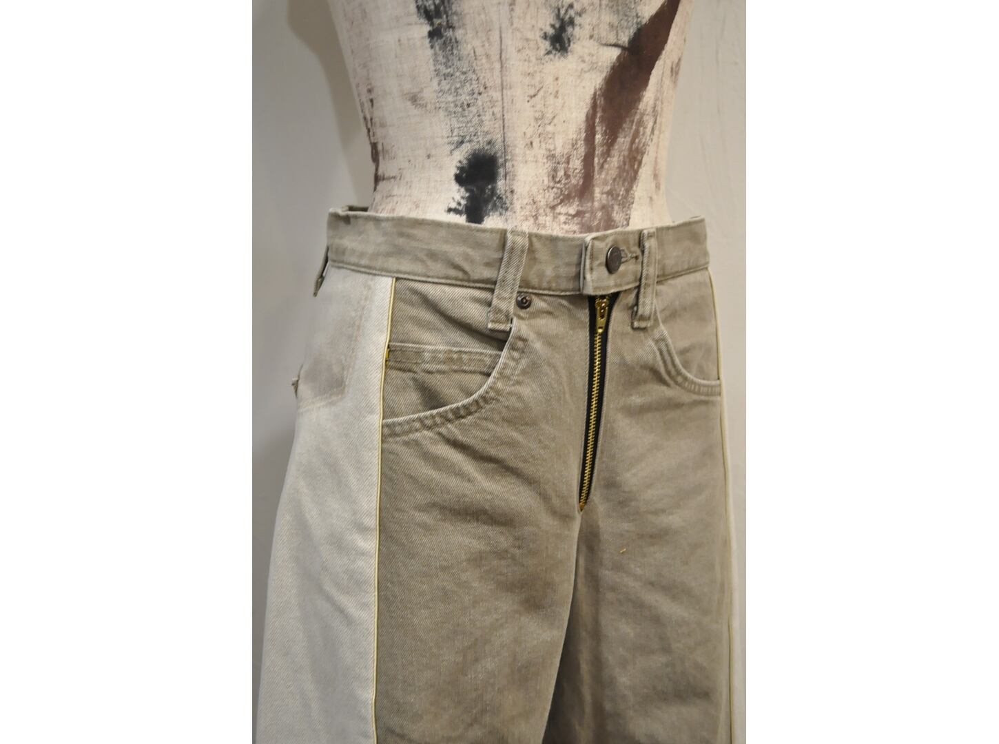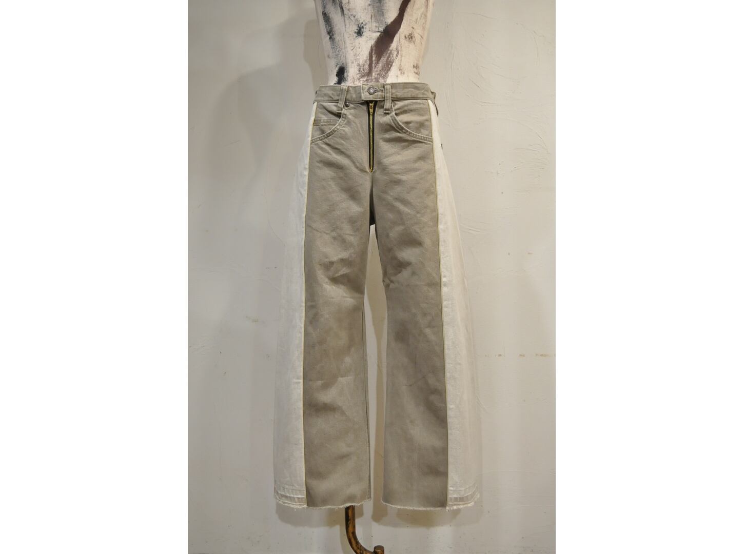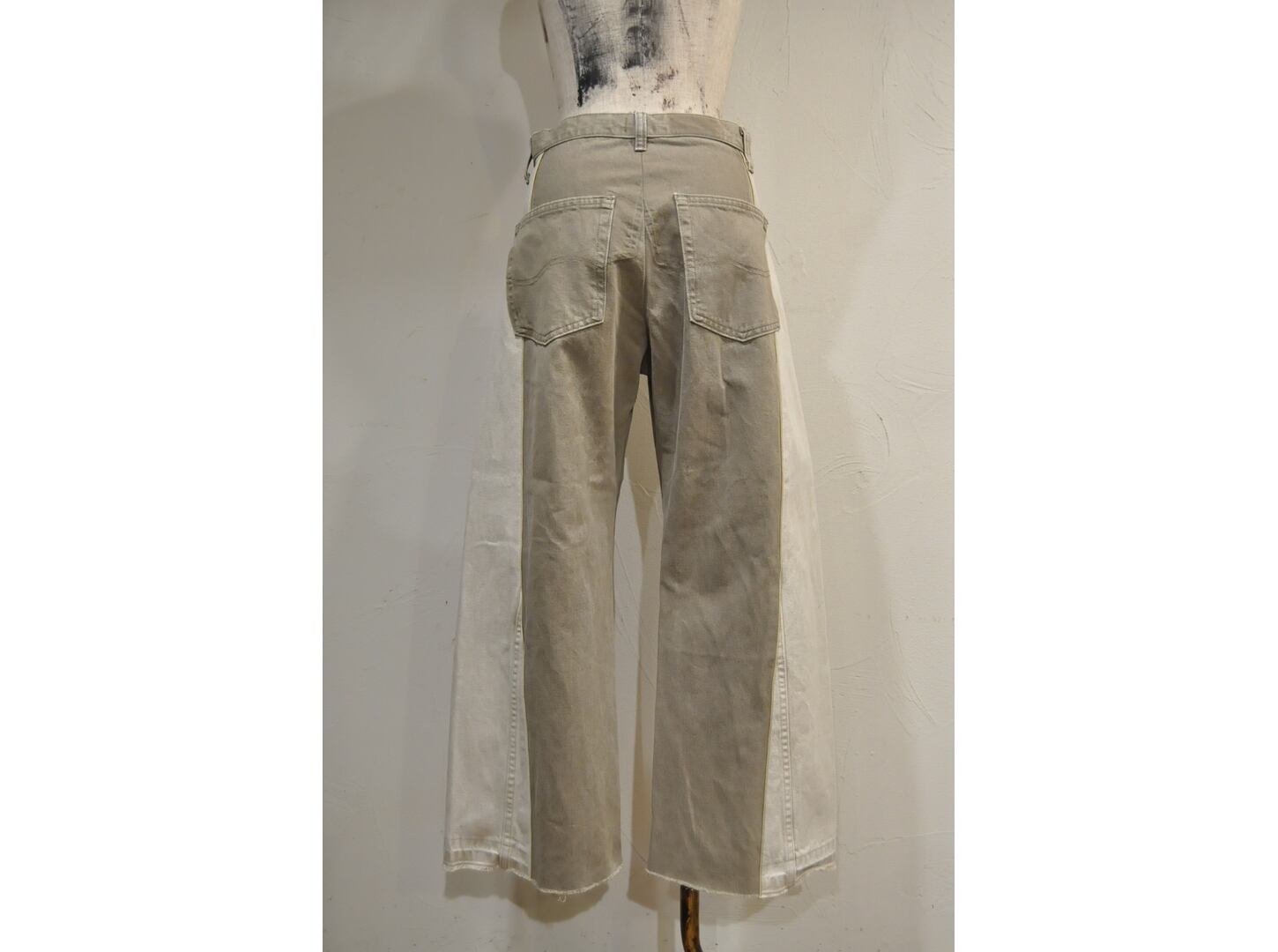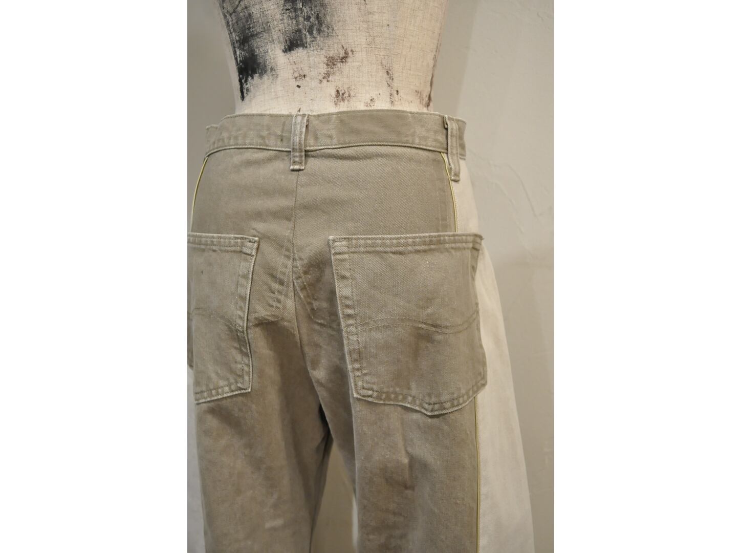 ●古着のデニムを使用し、パターンにはめ2着をドッキングしたデザインです。