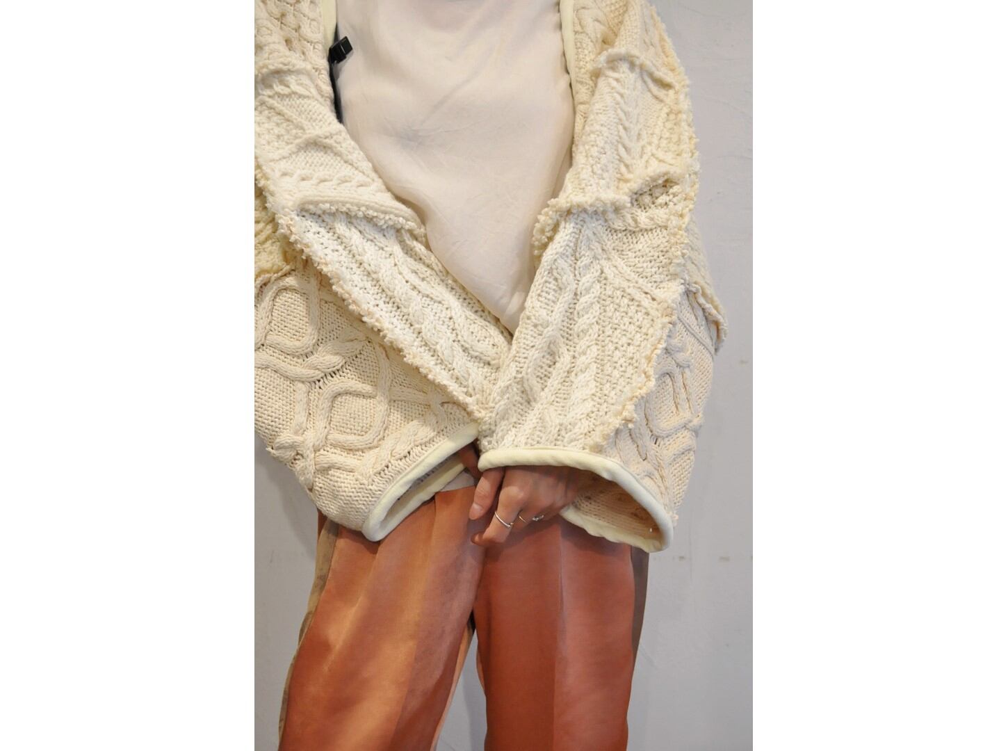 ●古着のフィッシャーマンセーターをパッチワークで再構築したザックリとした一点物のボレロです。