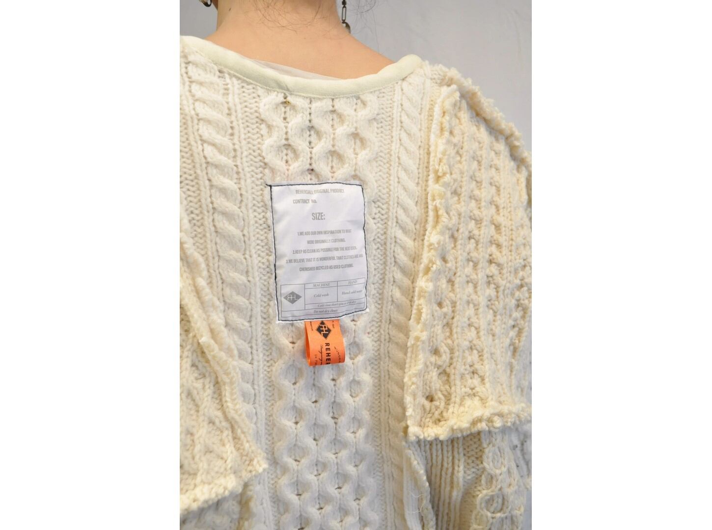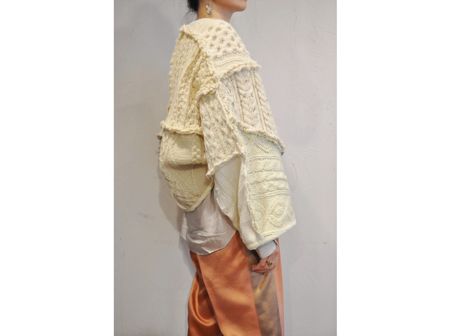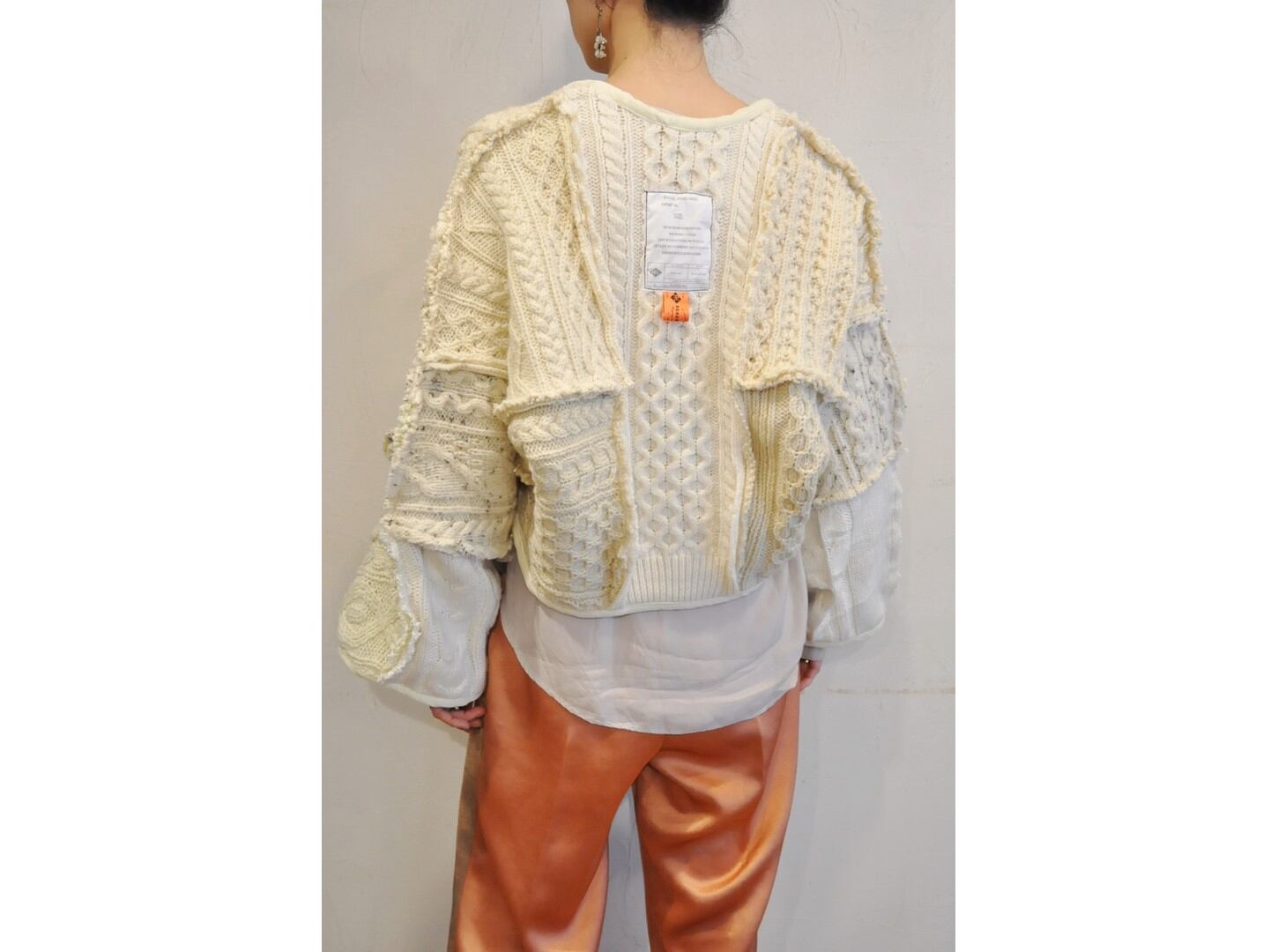 ●古着のフィッシャーマンセーターをパッチワークで再構築したザックリとした一点物のボレロです。