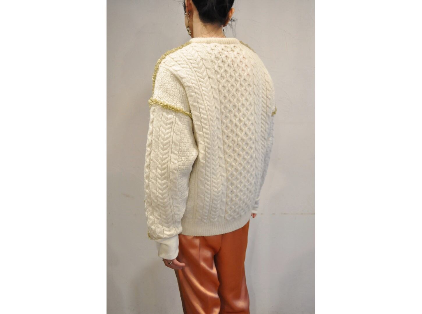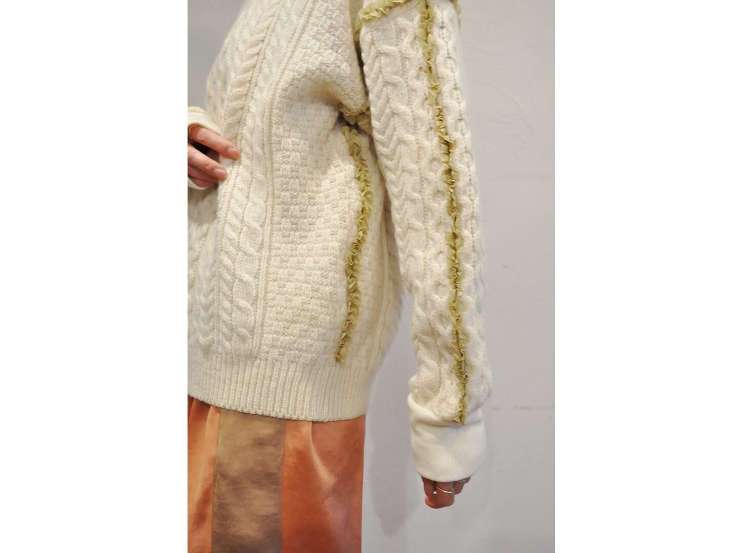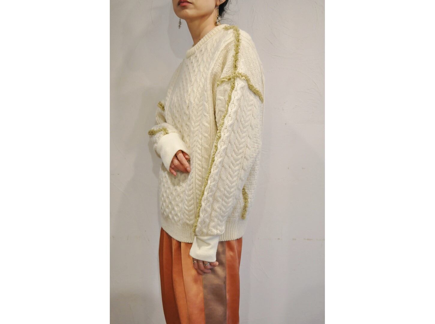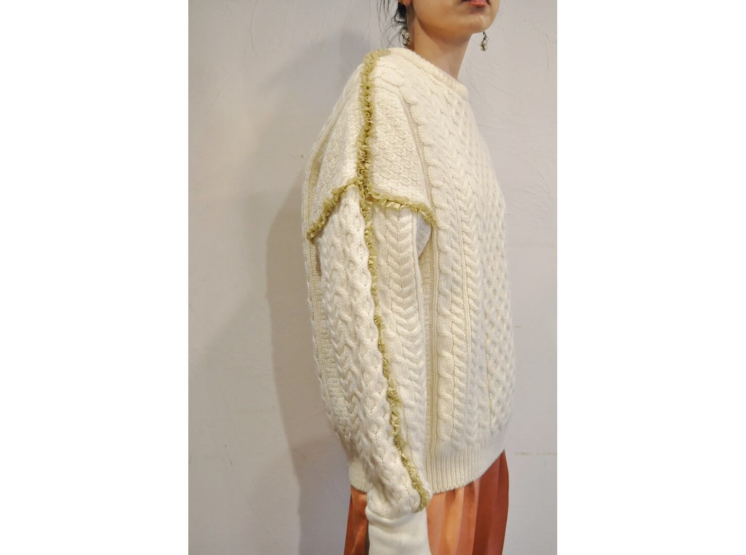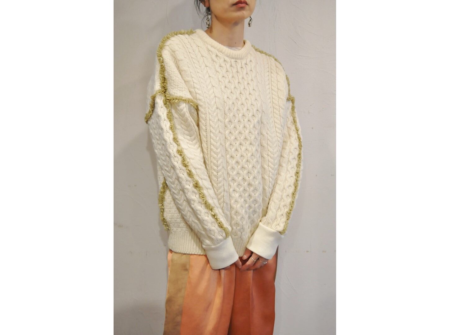 ●古着のフィッシャーマンセーターのシームラインにフリルをあしらったデザインの一点物。