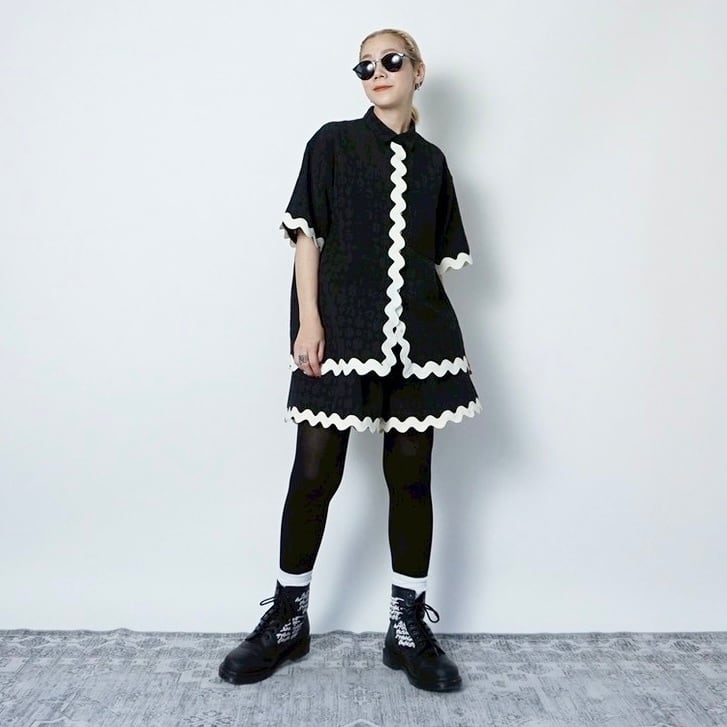 身幅が110cm程度あるのでどなたでも着れるオーバーサイズです。身体のラインを拾わず、体型を気にする方にもスッキリと着ることができます。着用してみると、痩せた?と声がかかるほどで少し驚きました。そして、サンプルの入荷と同時に、スタッフが飛びついたのが、このシャツとショートパンツでした。痩せて見えると好評で、スタッフにも人気NO.1のシャツです。