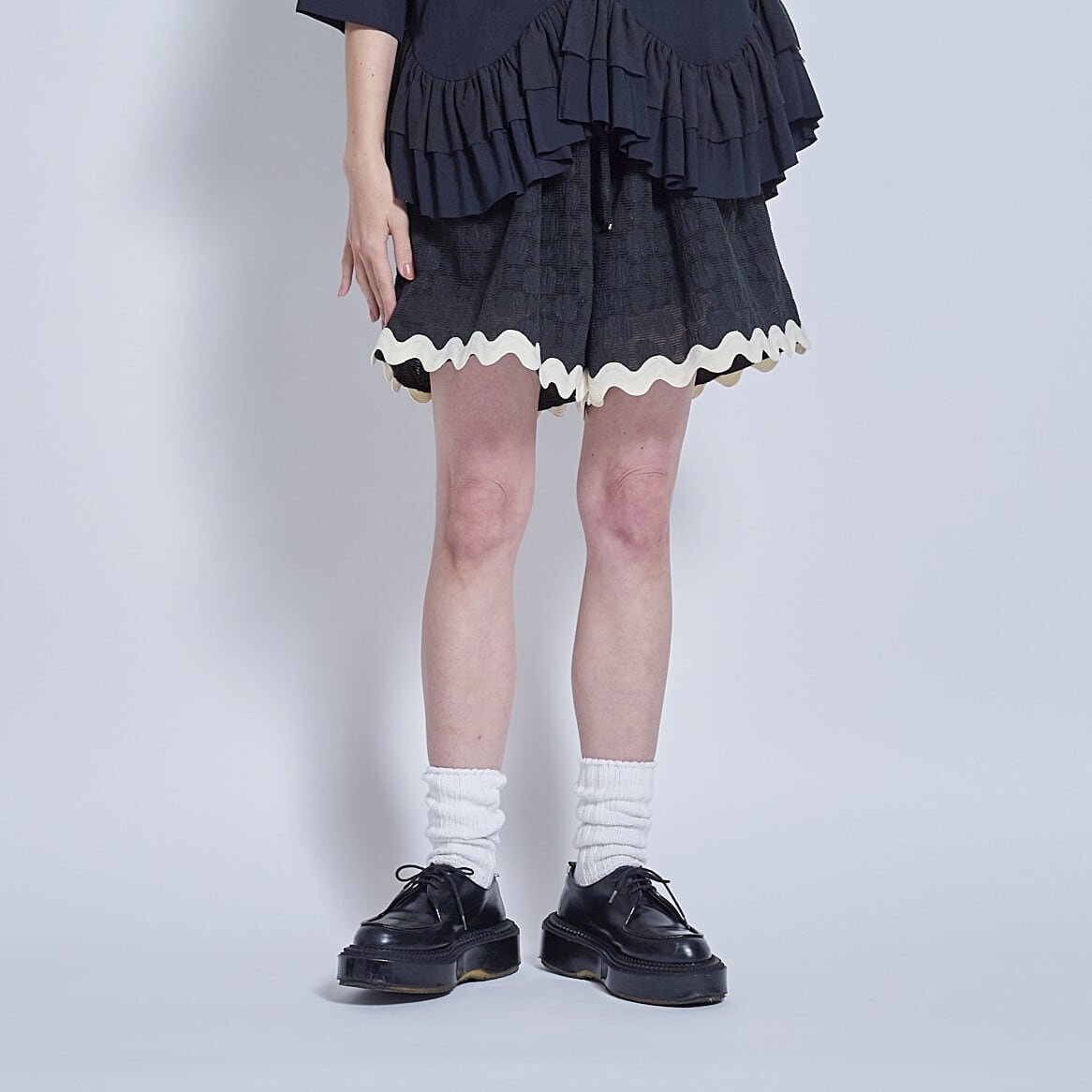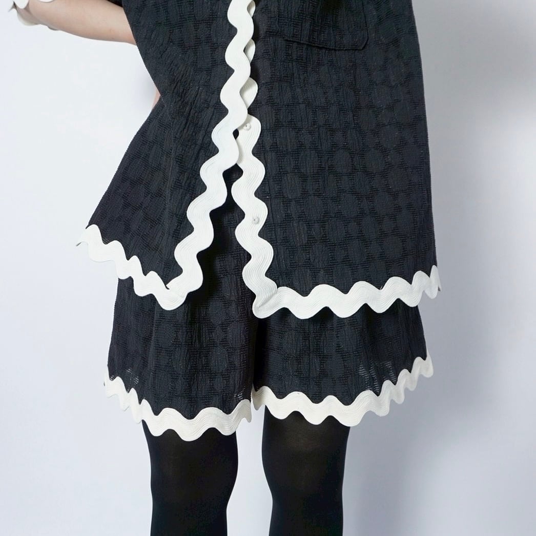 お勧めはブラックカラーでのシャツとのセットアップ。アイボリーはリトルドレスのアンダーパンツになり、ウエーブのテープが見えて非常に可愛かったです。