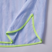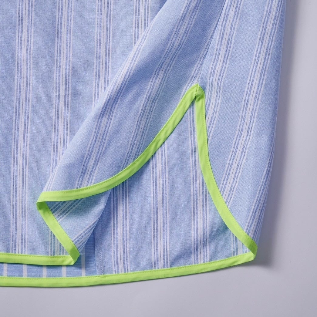 私はサックスブルーが非常に気に入っています。デニムスカートや、パンツと合わせて着てみたいなと思います。今回のこのギンガムシリーズは、特に気に入っていて、挑戦してもらえたら嬉しいです。