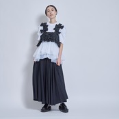 これまでにもビスチェは真夏にいくつも作ってきましたが、今回、本当のお気に入りができたなと思って満を持してリリースします。後ろはゴムになっていて着脱がしやすい、かぶるタイプのビスチェ。後ろには紐付きで結んでしまうと肩から落ちることがなく、着心地に安定感があります。バストが96cm〜ゴムで伸びるので比較的大きめ。体型は選びません。
