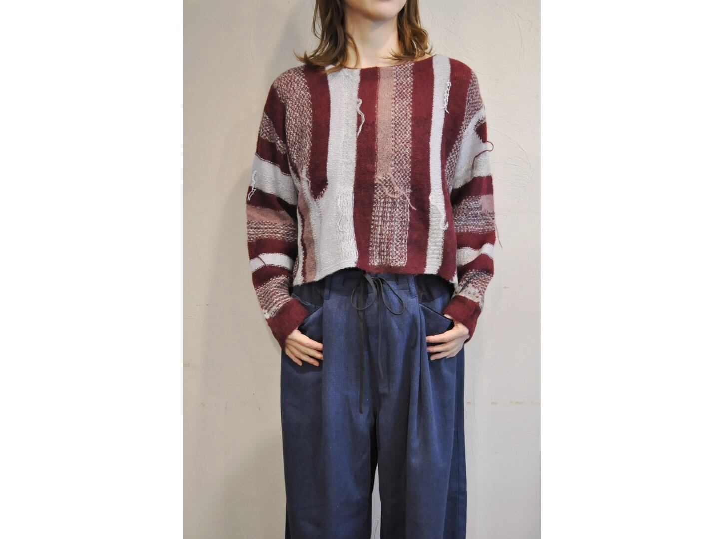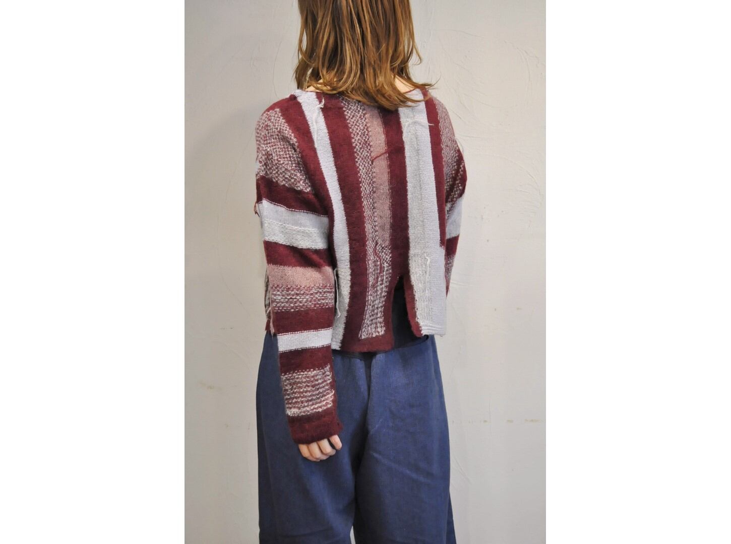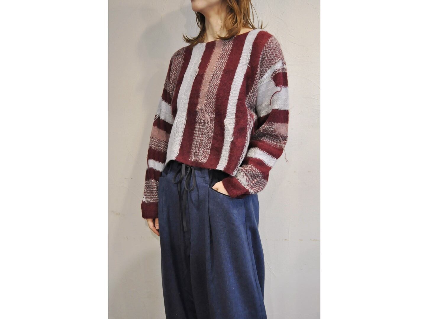 ●アルパカ混の上質な糸を使用したプルオーバーは、多色の糸が織りなす奥行きのある表情と、構築的な切り替えデザインで視線を惹きつける存在感を放ちます。