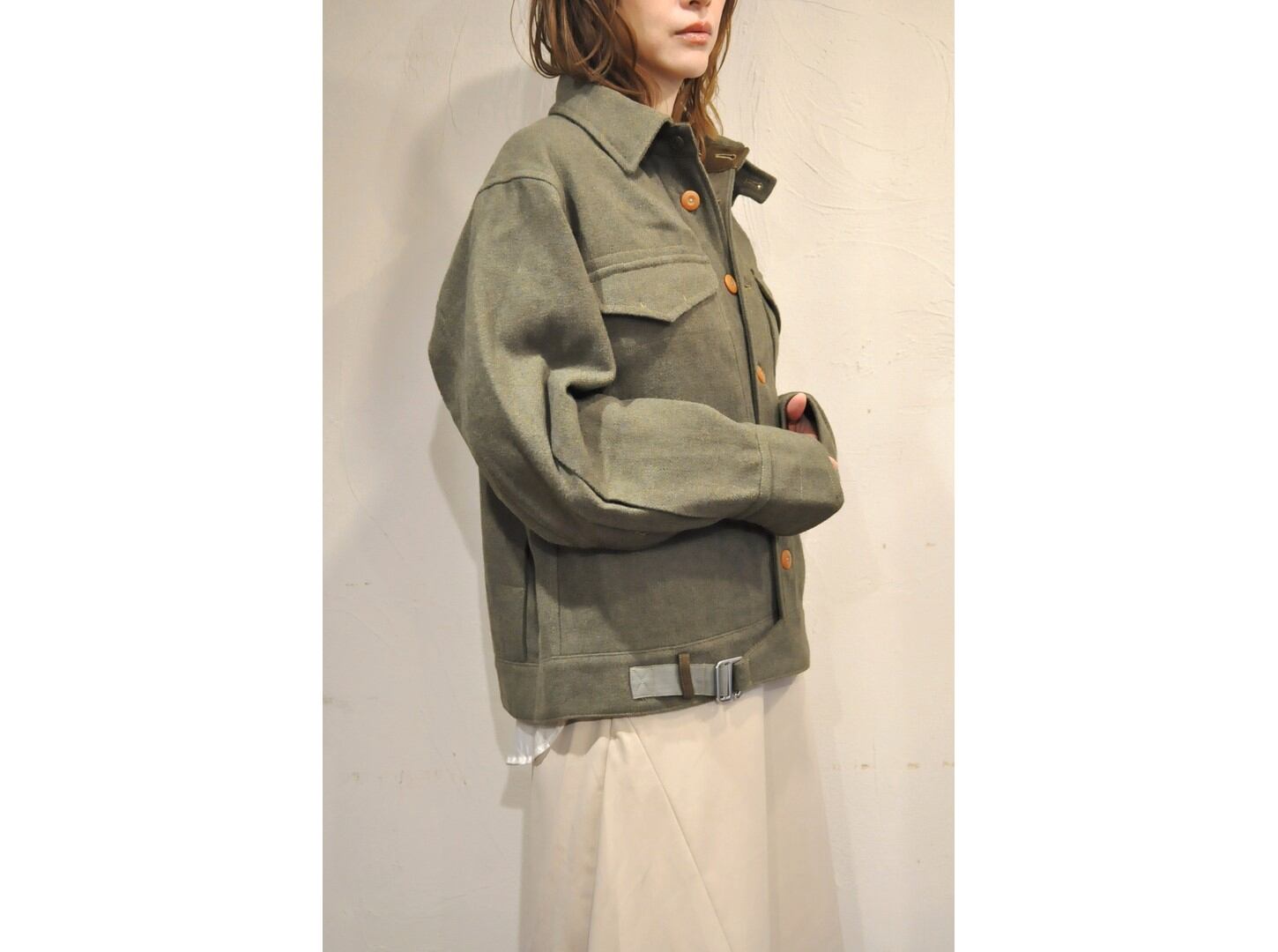 ●メランジ感のあるウール混ツイードを使用し、洗練されたバランスのミリタリージャケット。