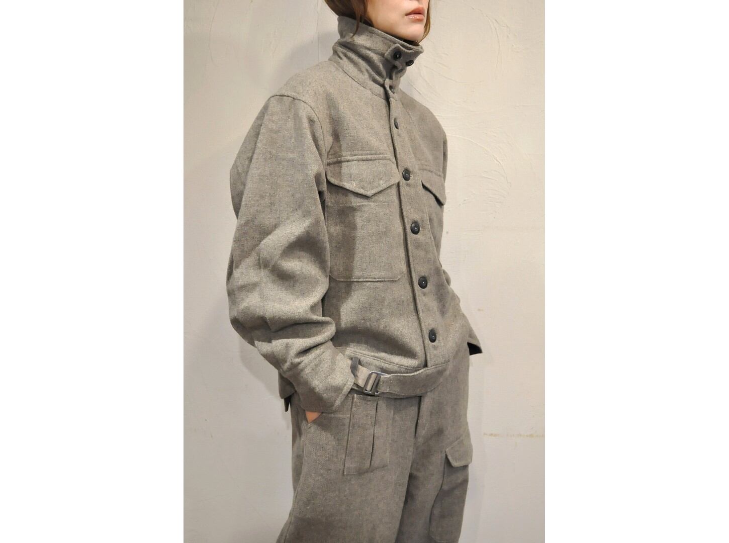 ●メランジ感のあるウール混ツイードを使用し、洗練されたバランスのミリタリージャケット。