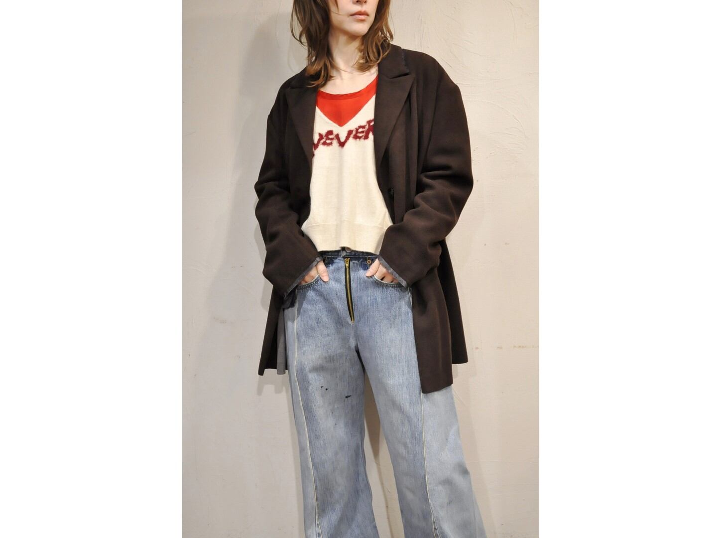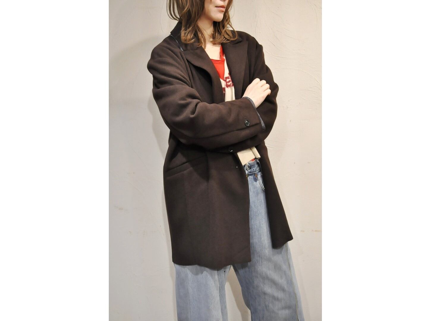 ハリのあるボンディング素材を活かし、裾と袖口は断ち切り仕様で仕上げ、潔くエッジの効いた抜け感を演出。