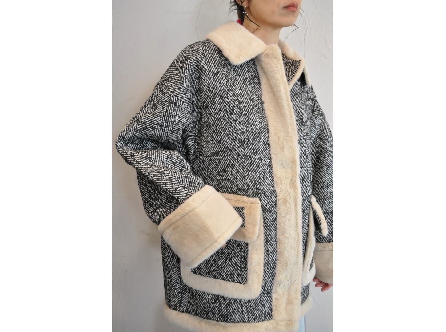 【KOKO's select】herringbone eco fur coat /【ココズセレクト】ヘリンボーンエコファーコート