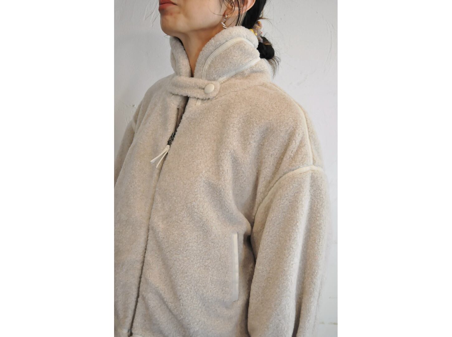 ●フェイクレザーのパイピングがポイントのボアジャケット。