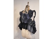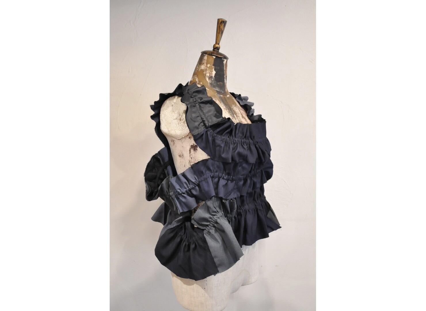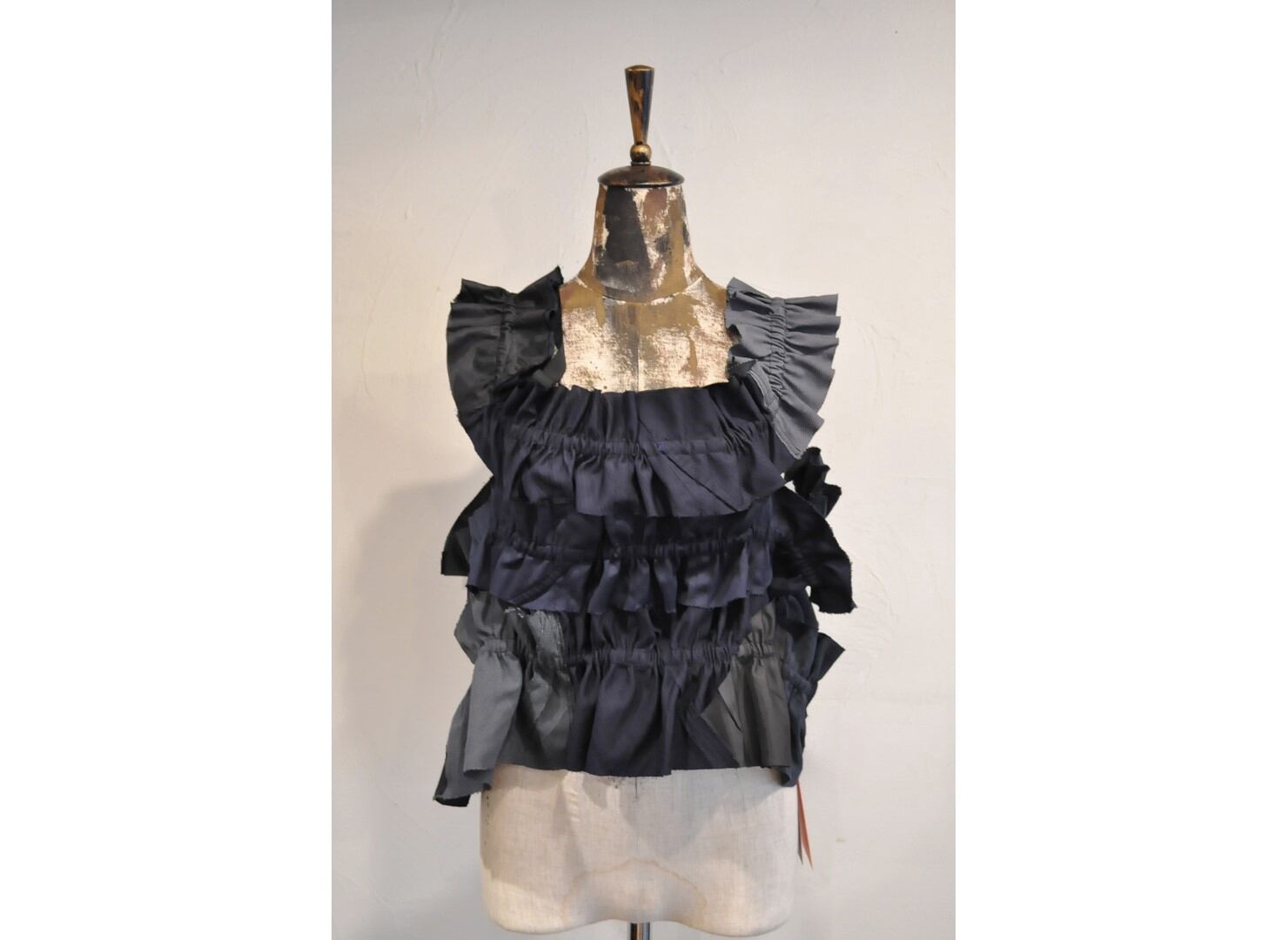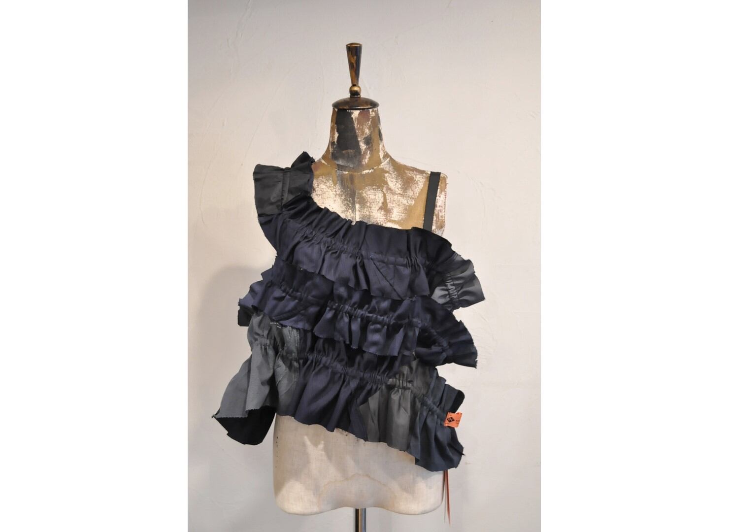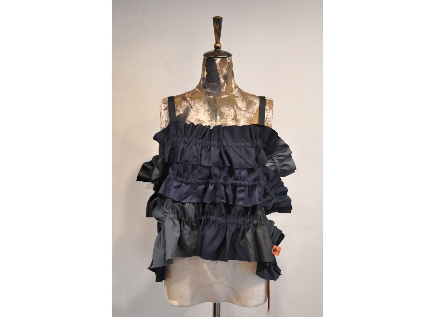 ●様々なスーツパンツの生地を使用して作られたフリルたっぷりのキャミソール。