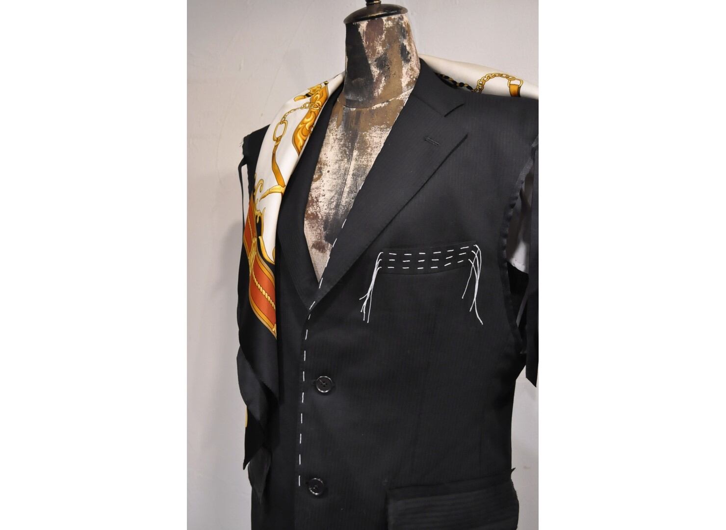 ●古着のメンズスーツジャケットをリメイクした一点物のジレです。