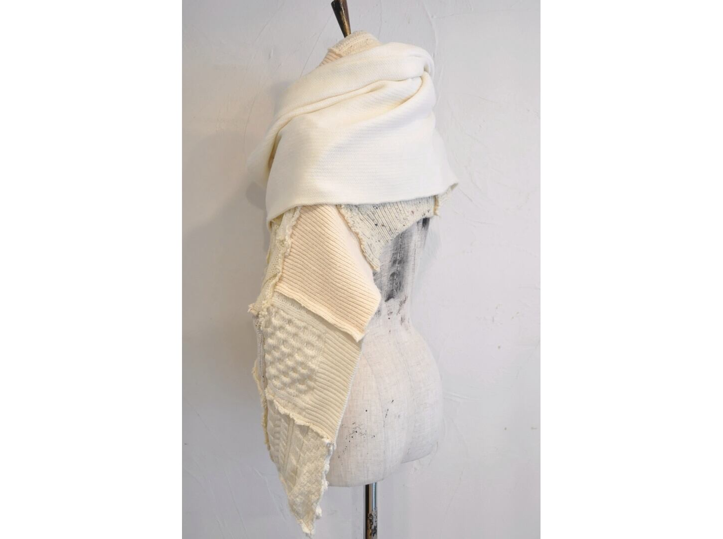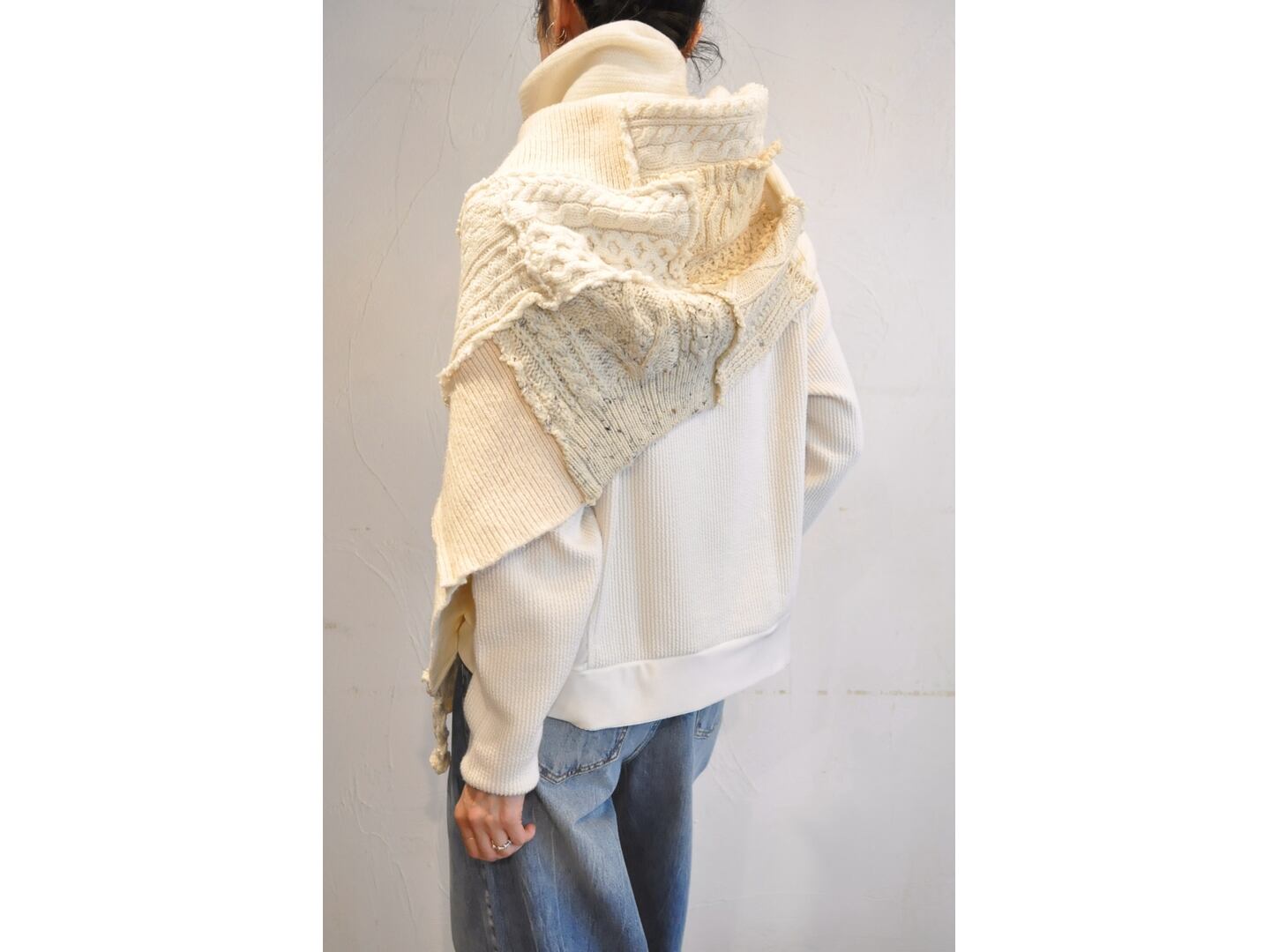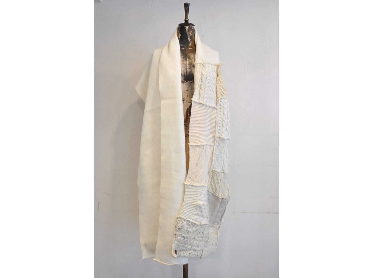 フィッシャーマンニットをパッチワークした一点物です。