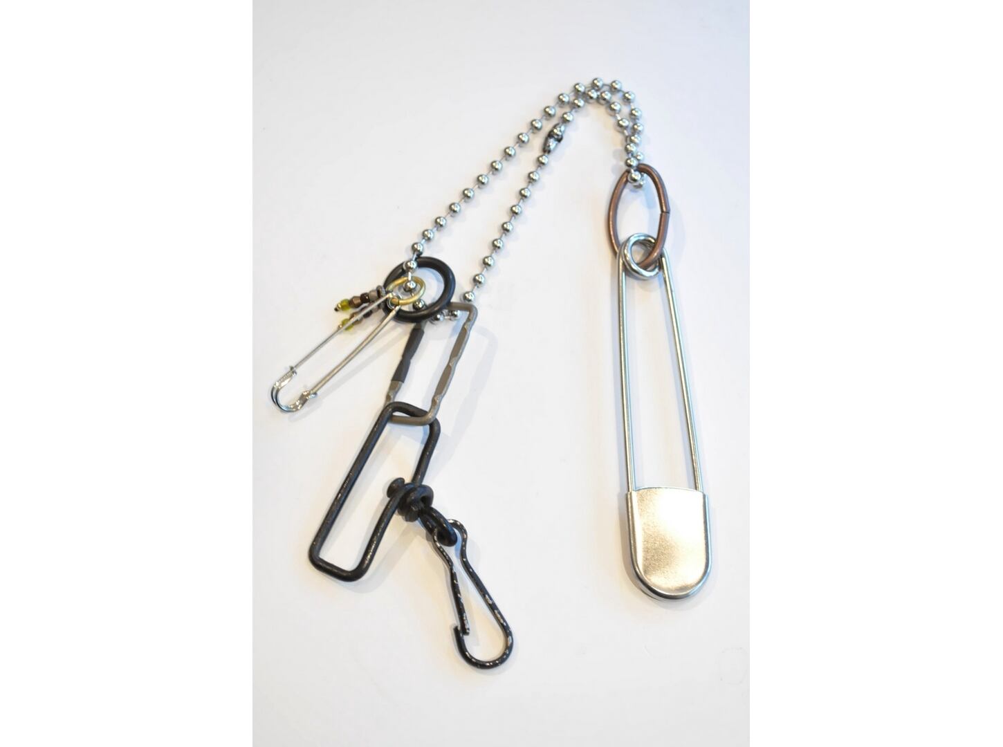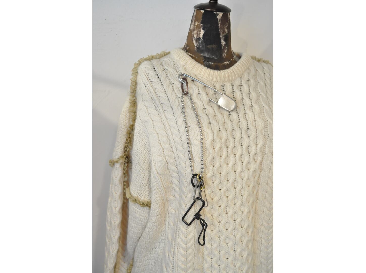 太めのボールチェーンとヴィンテージパーツやメタルパーツを使用したインパクトのあるアクセサリー。