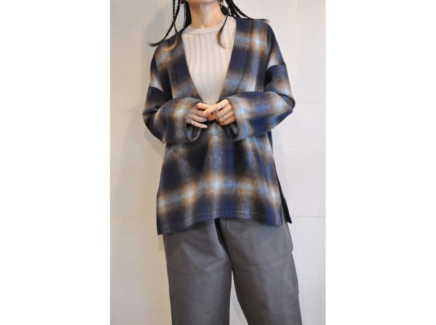 深いVネックで、ゆったりとした大人っぽいシルエットです。
