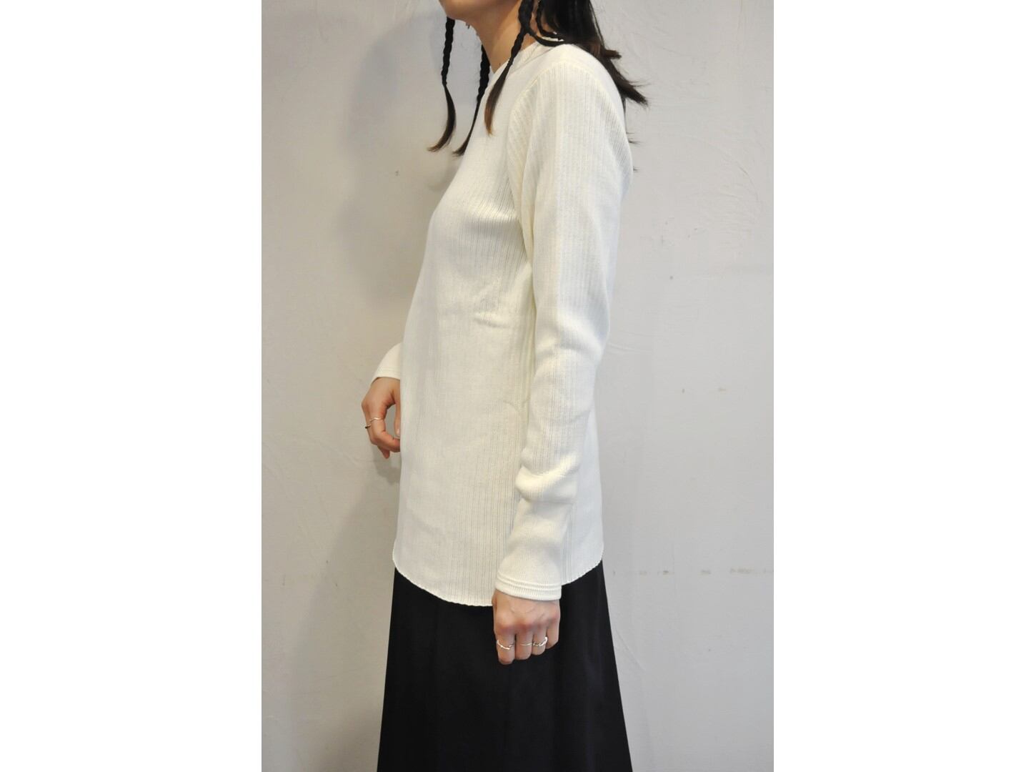 伸縮性のあるサーマル生地のロンT。