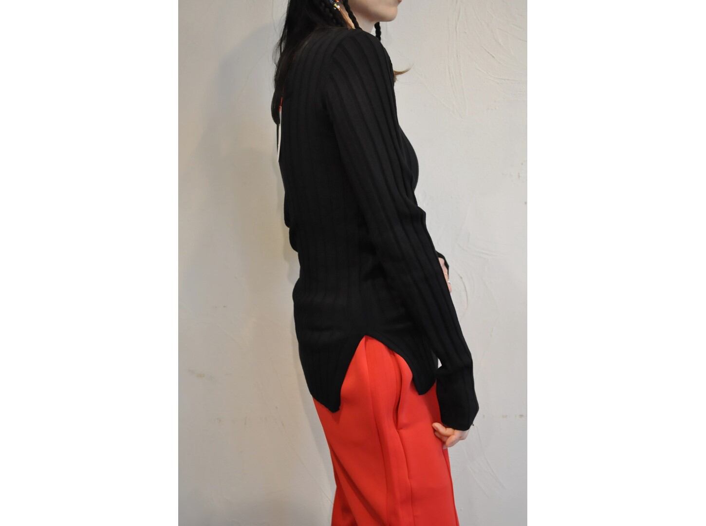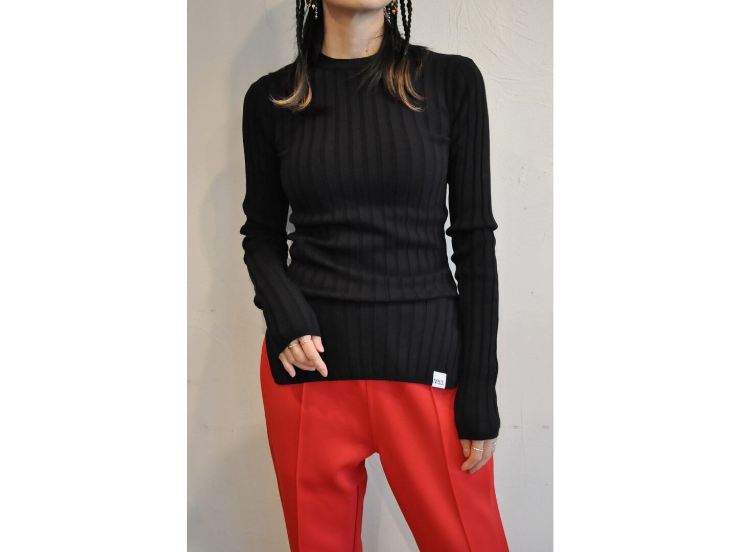 ●柔らかな薄手のリブニット生地を使用したクルーネック。