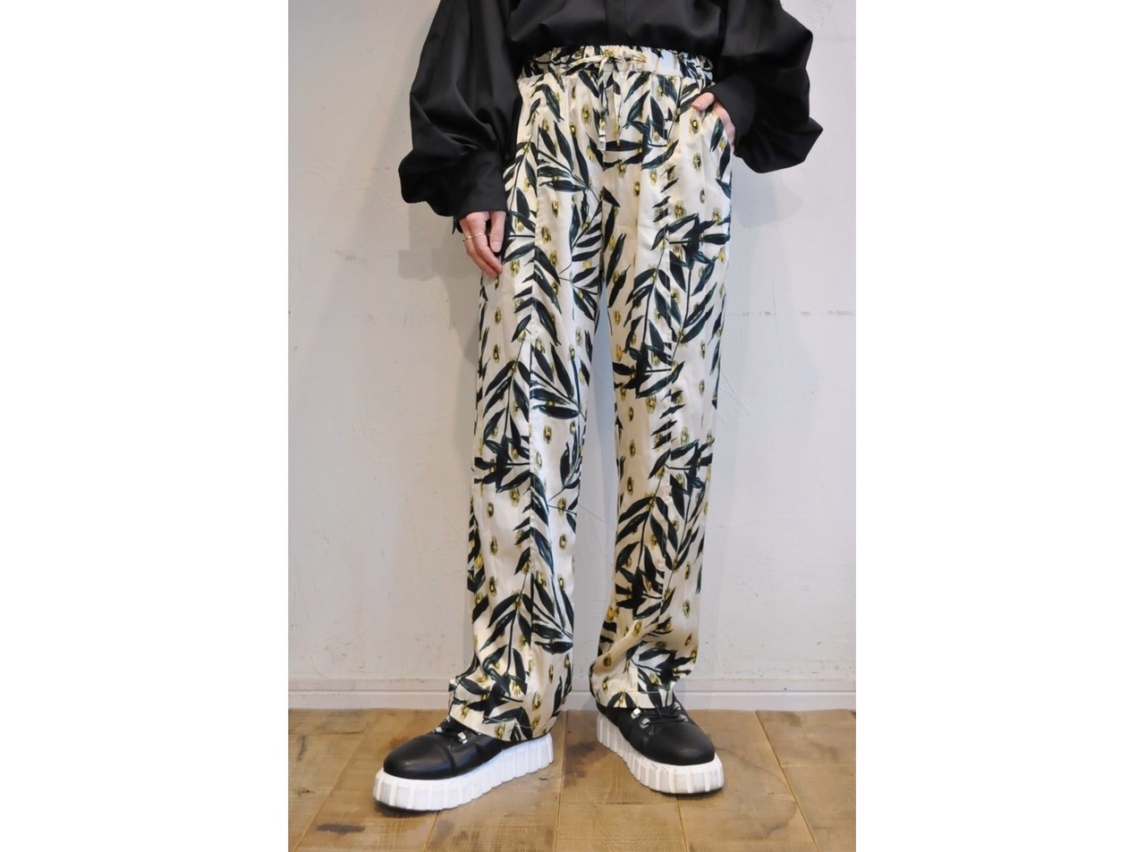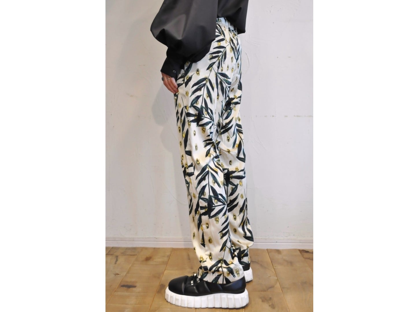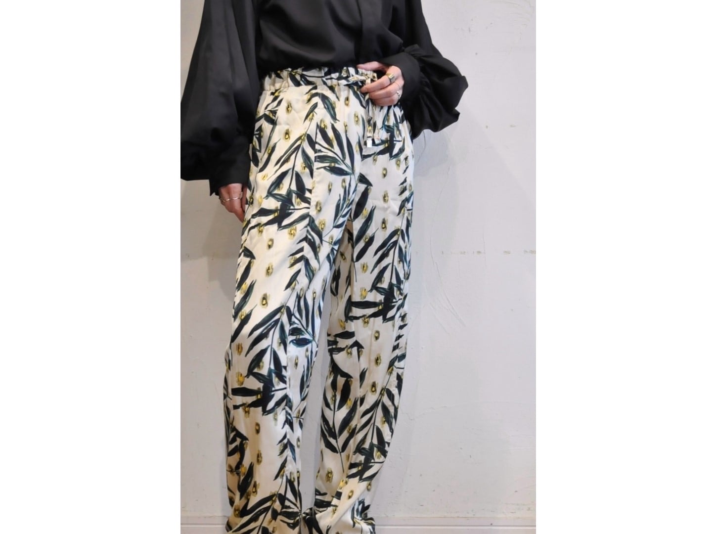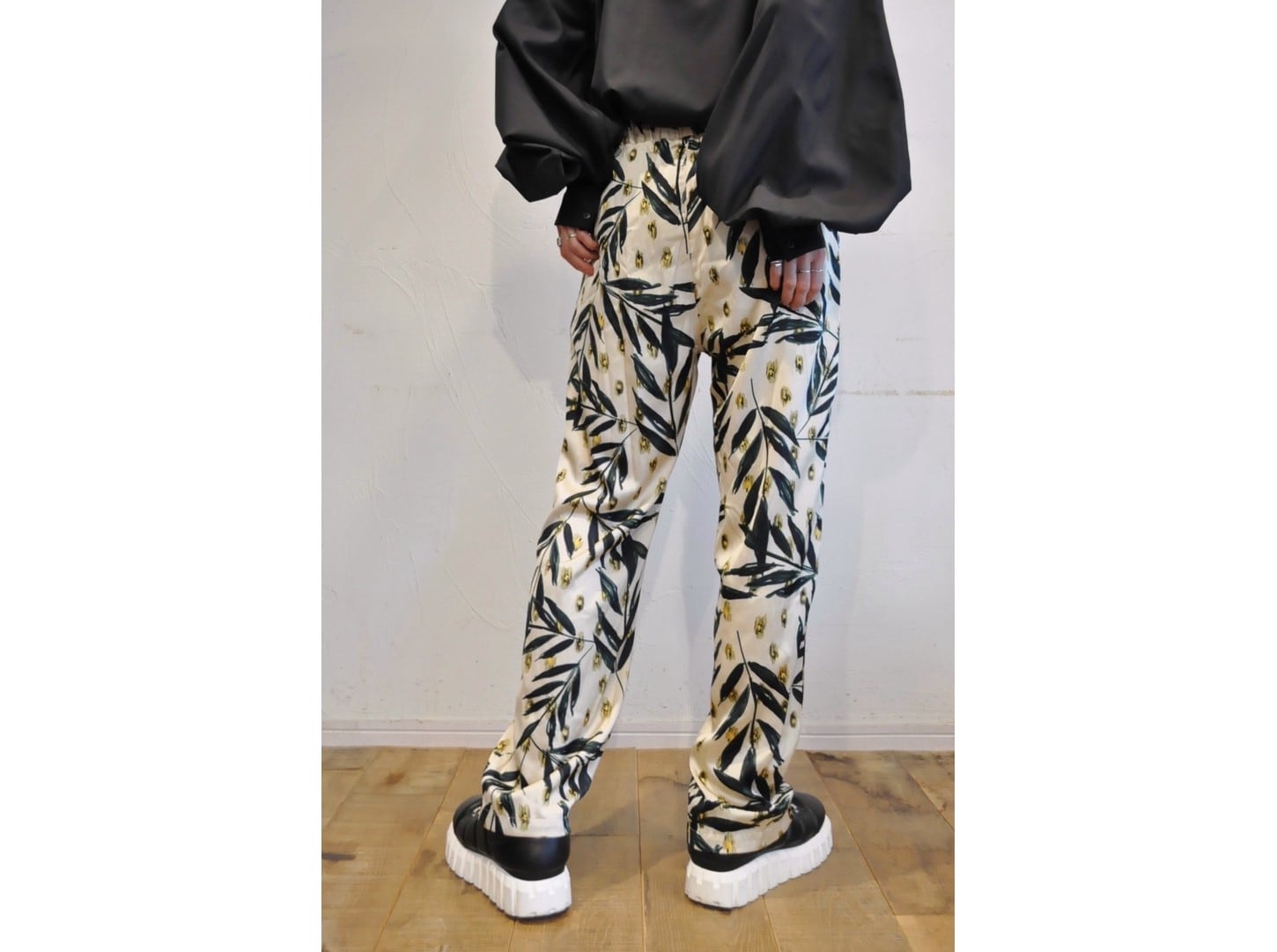●華やかでインパクトのあるテキスタイルが目を引くいージーパンツ。