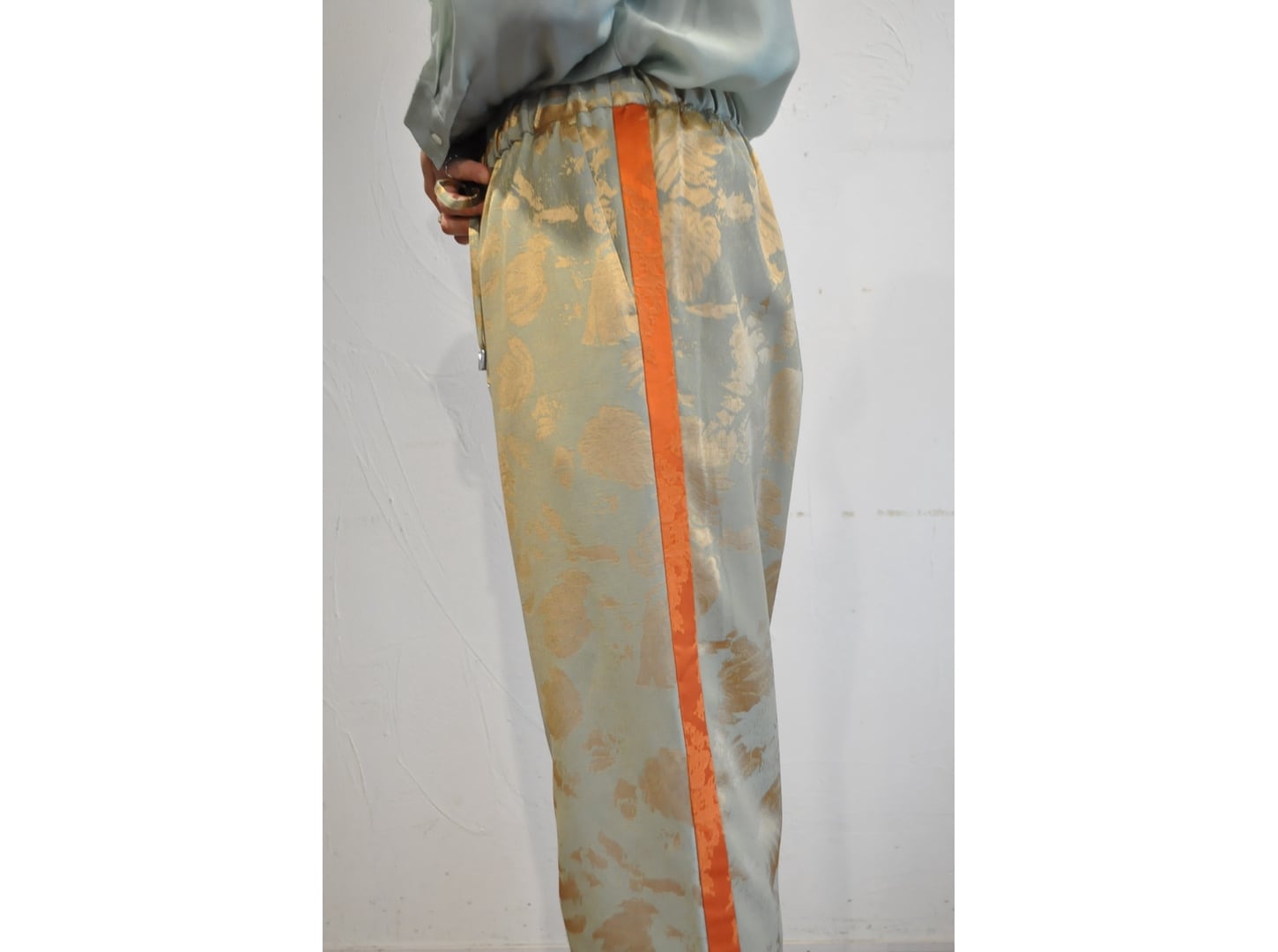 ストレートシルエットで、サイドに別のジャガード素のラインが入っています。