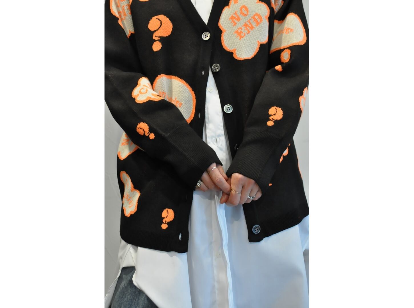 ●ポップなロゴと配色で、インパクトのあるオーバーサイズのカーディガン。