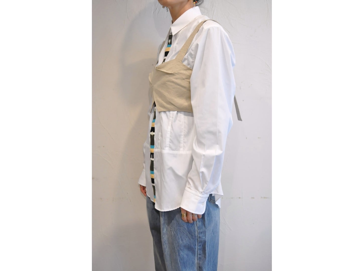 ●ランダムなタックが特徴的なビスチェ。