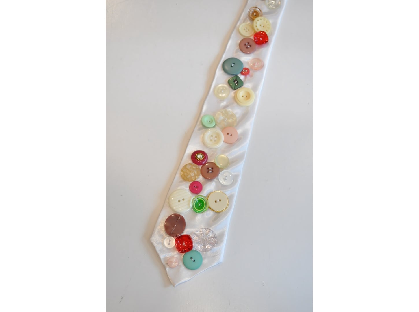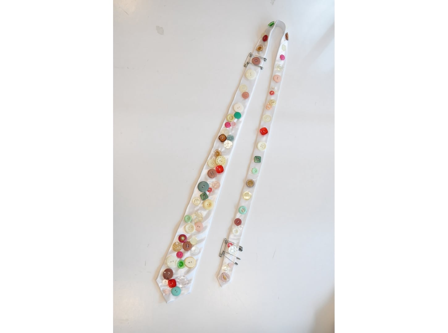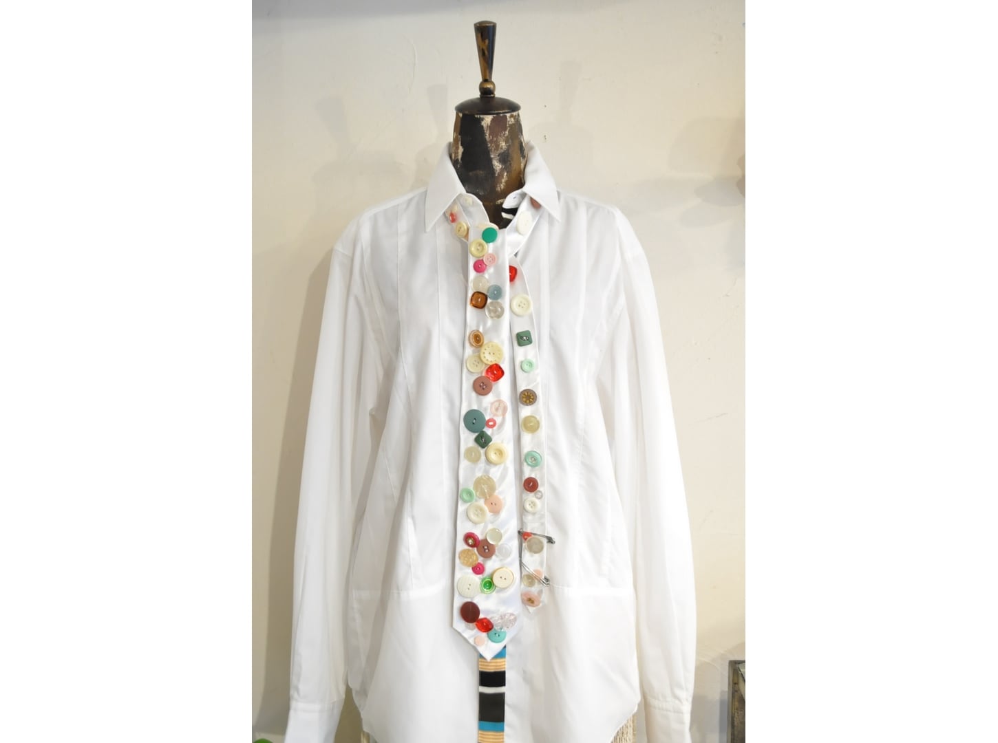 ●ヴィンテージやミリタリーのボタンなど様々なパーツを贅沢に、且つ、ふんだんに散りばめた一点物のネクタイ。