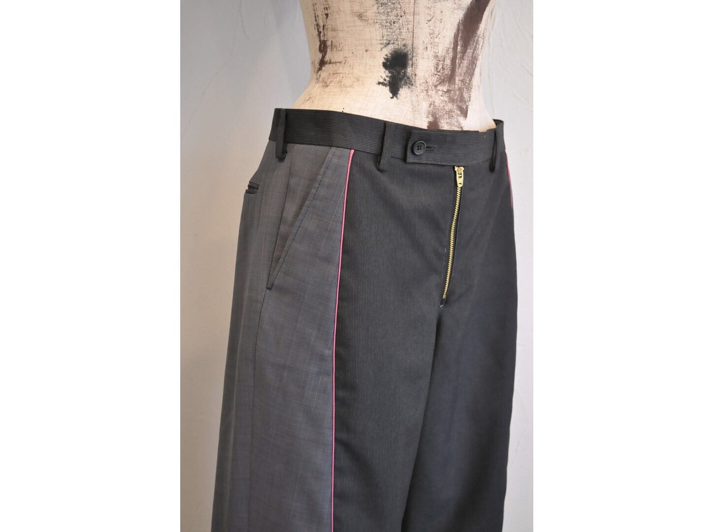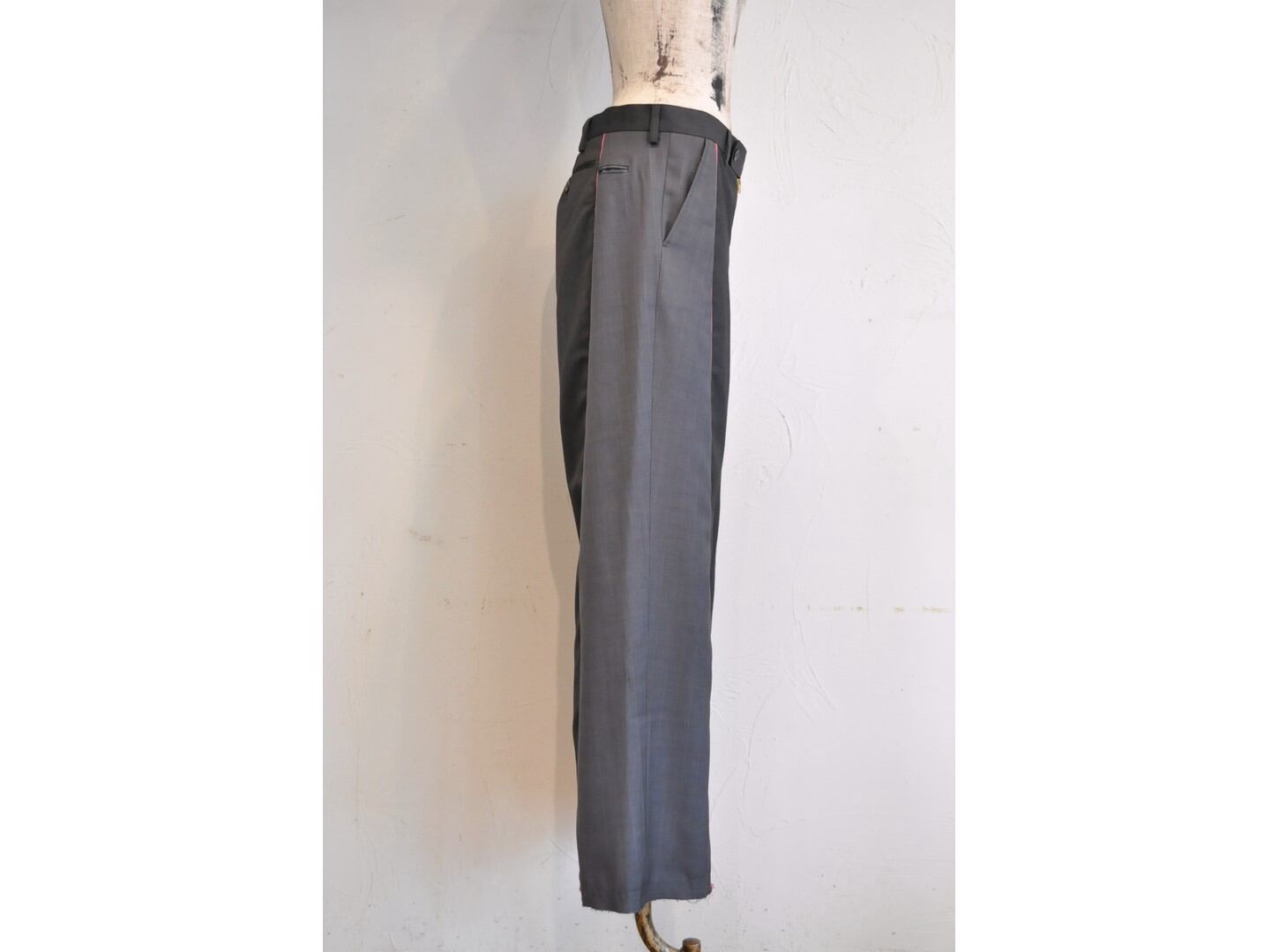 ●古着スーツパンツを2着使用し、ドッキングさせたリメイクパンツ。