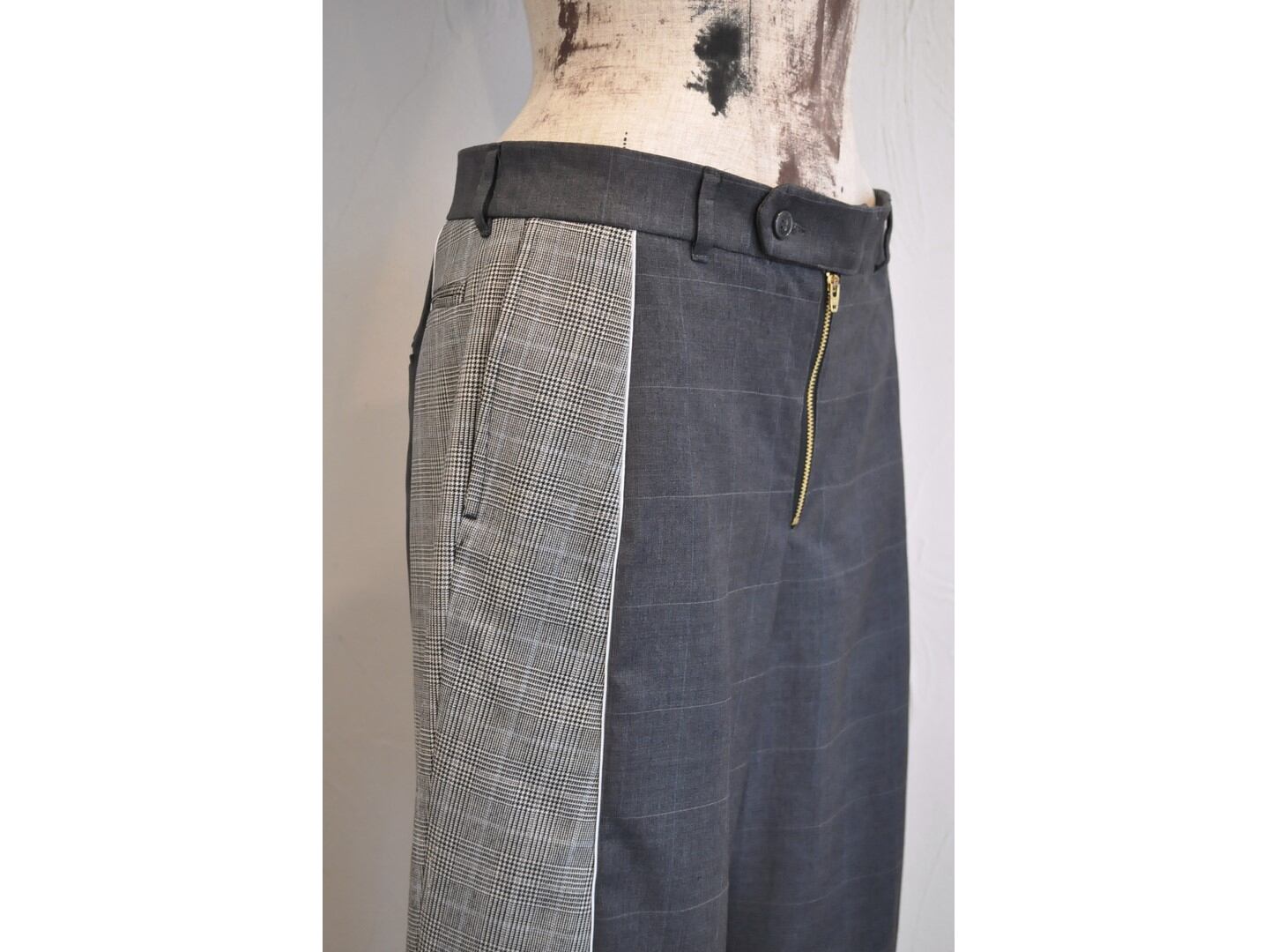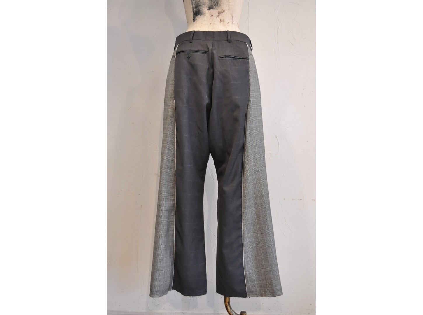 ●古着スーツパンツを2着使用し、ドッキングさせたリメイクパンツ。