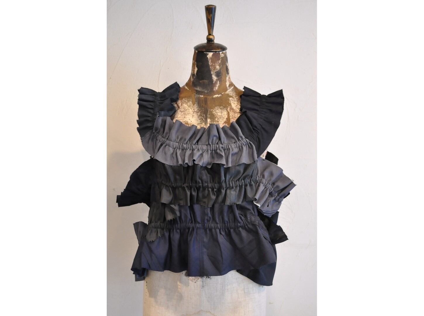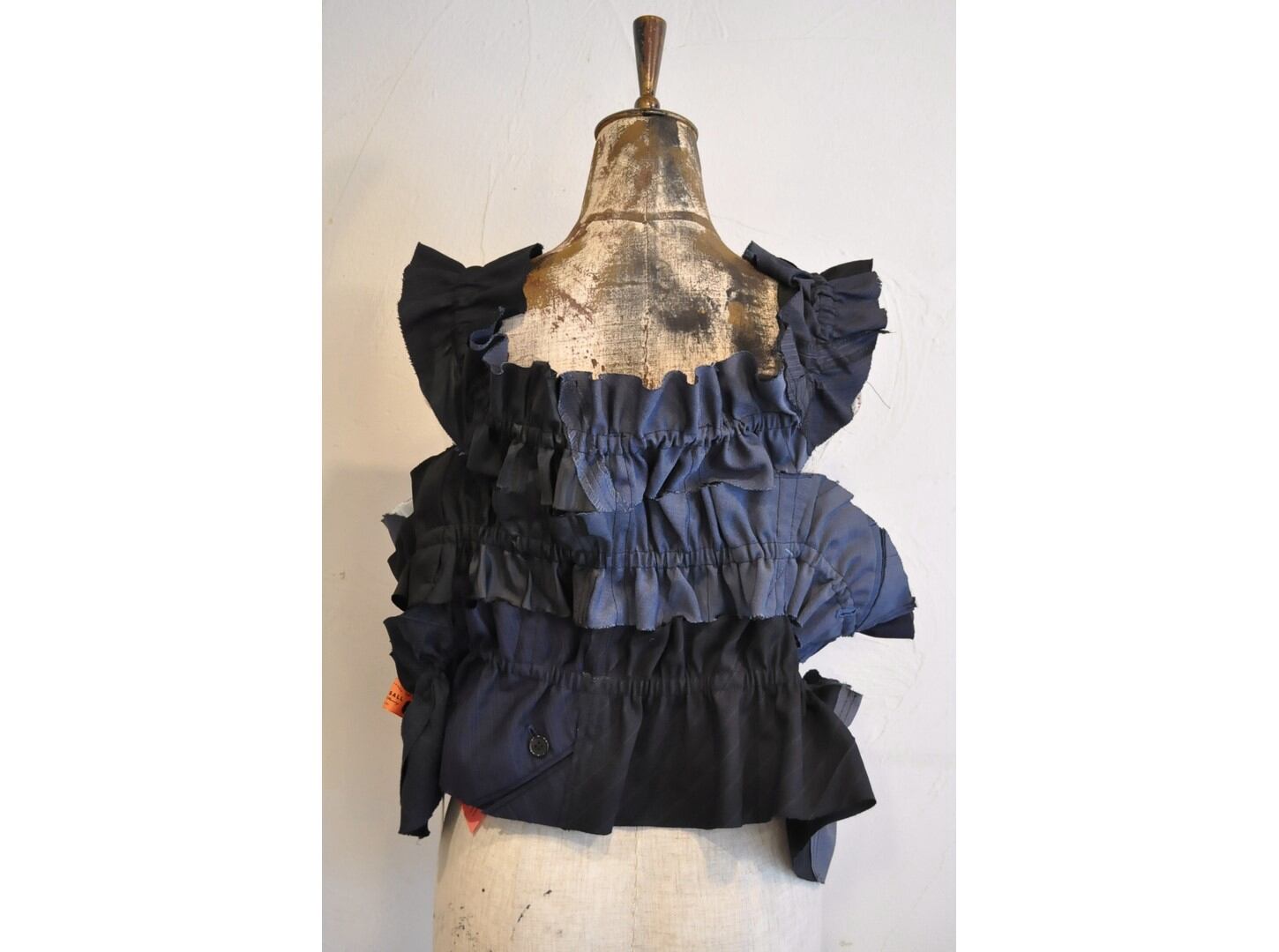 ●古着のスーツパンツを解体し、パッチワークしたキャミソール。