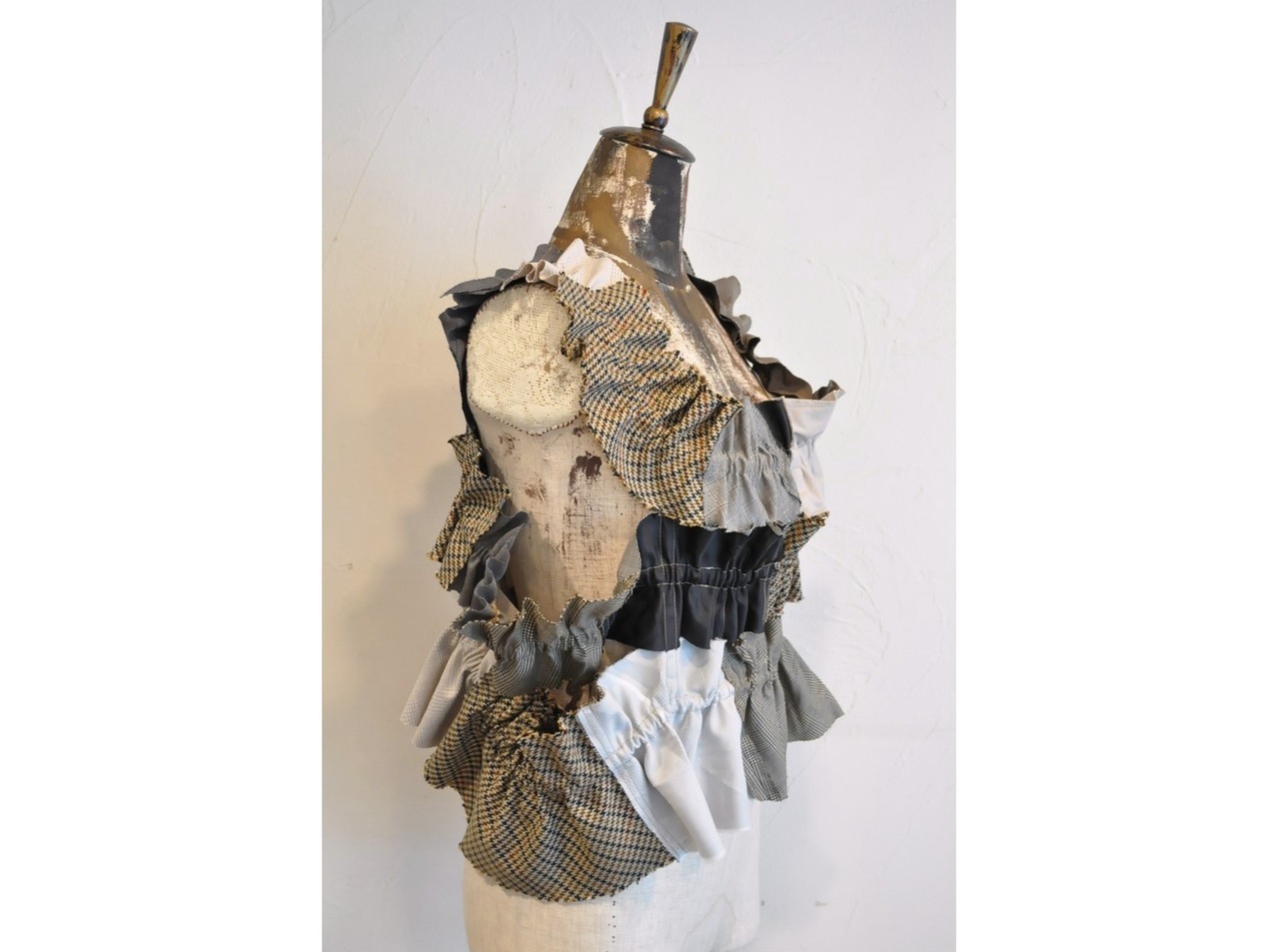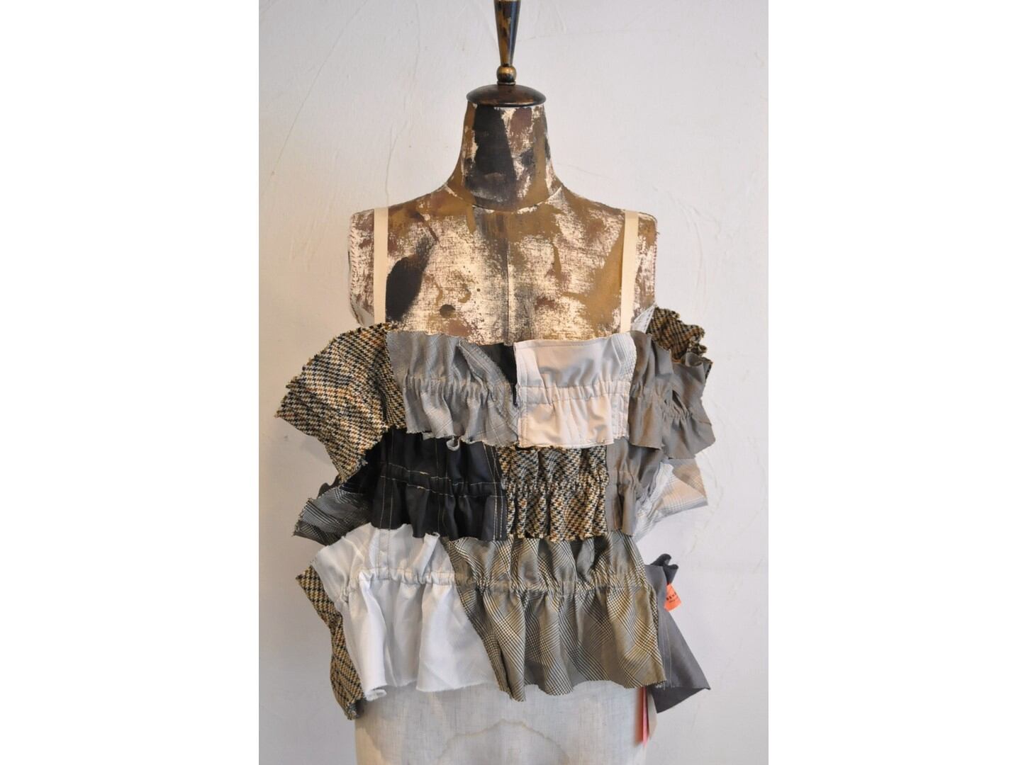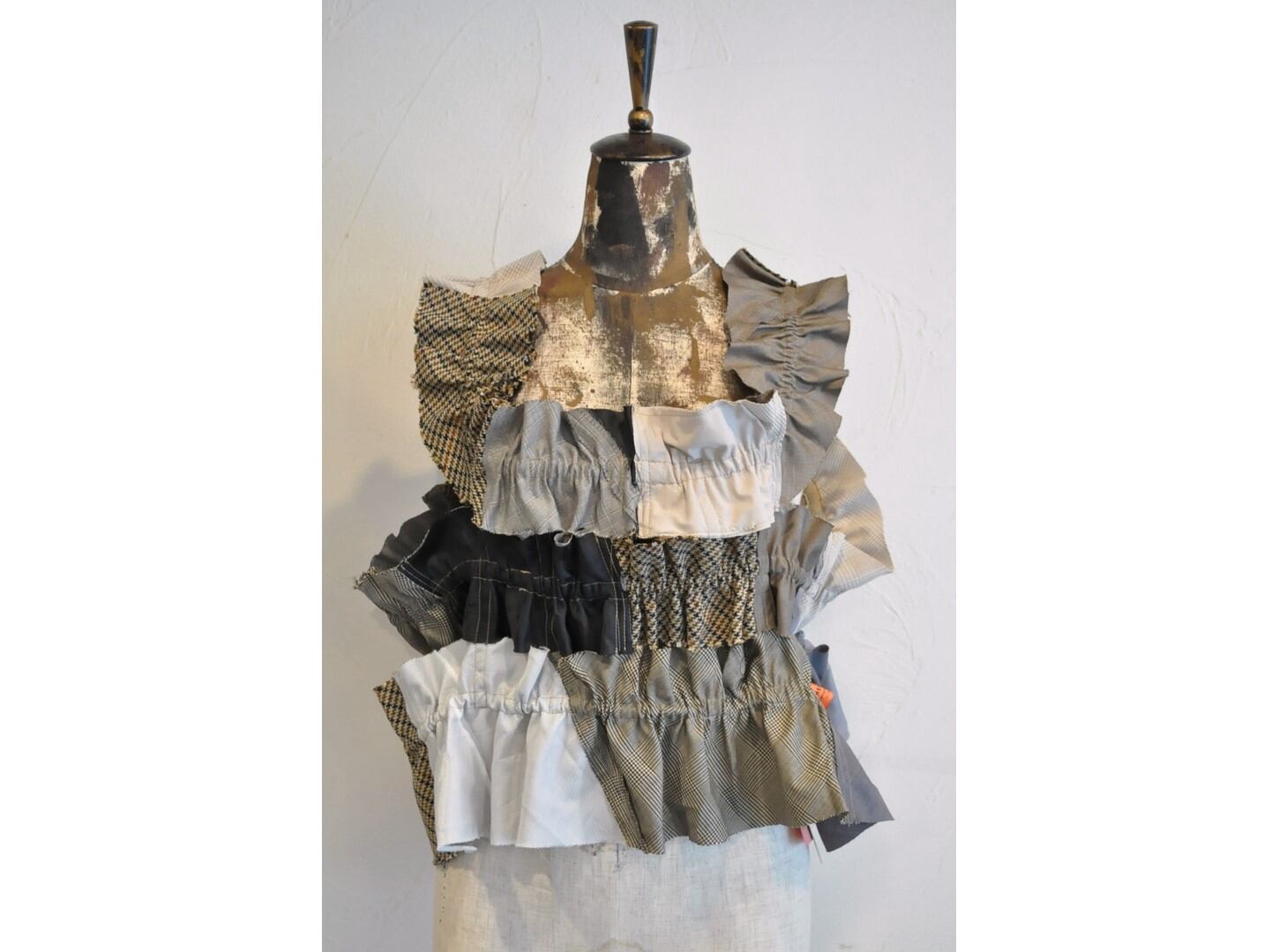 ●古着のスーツパンツを解体し、パッチワークしたキャミソール。
