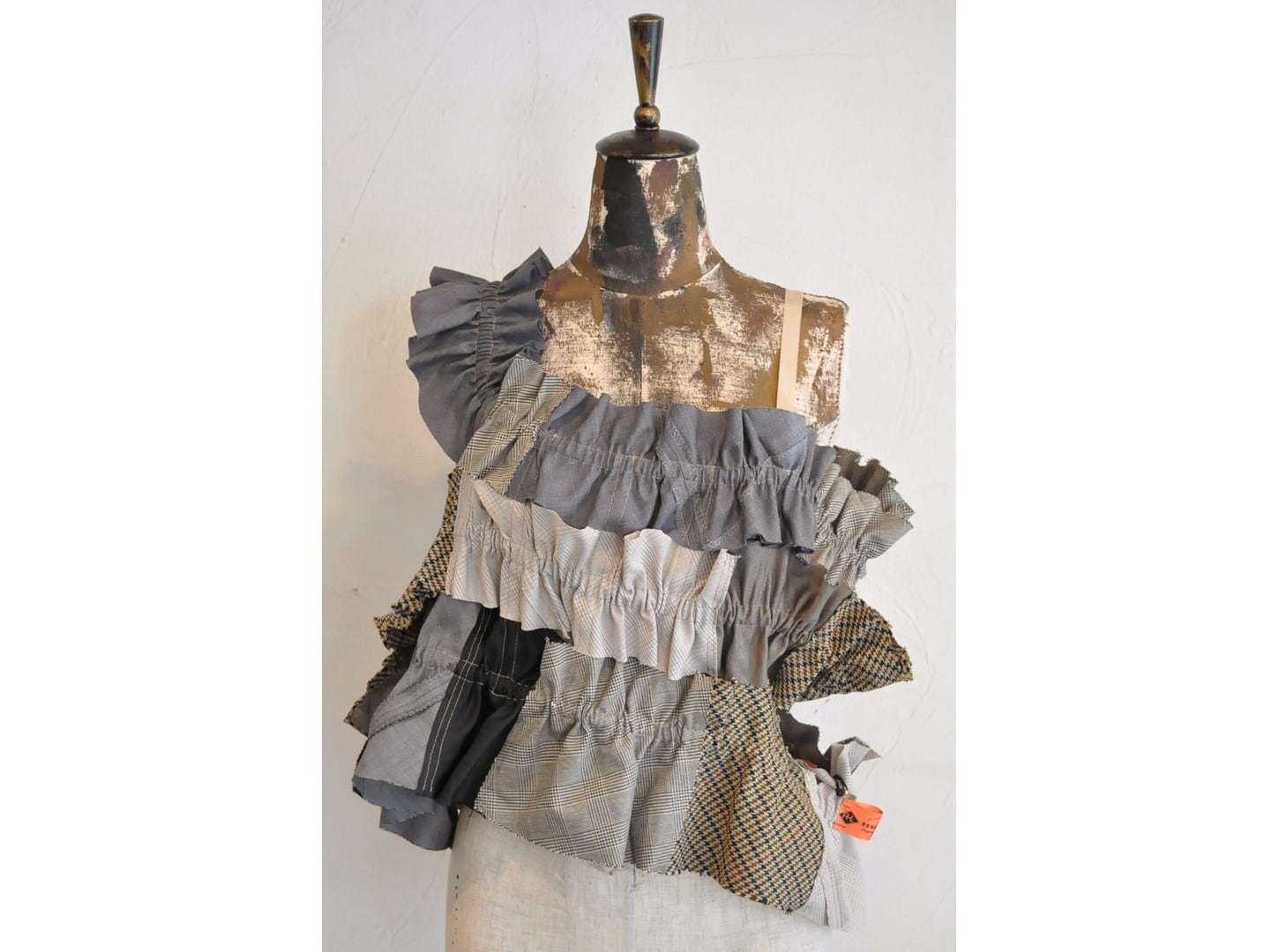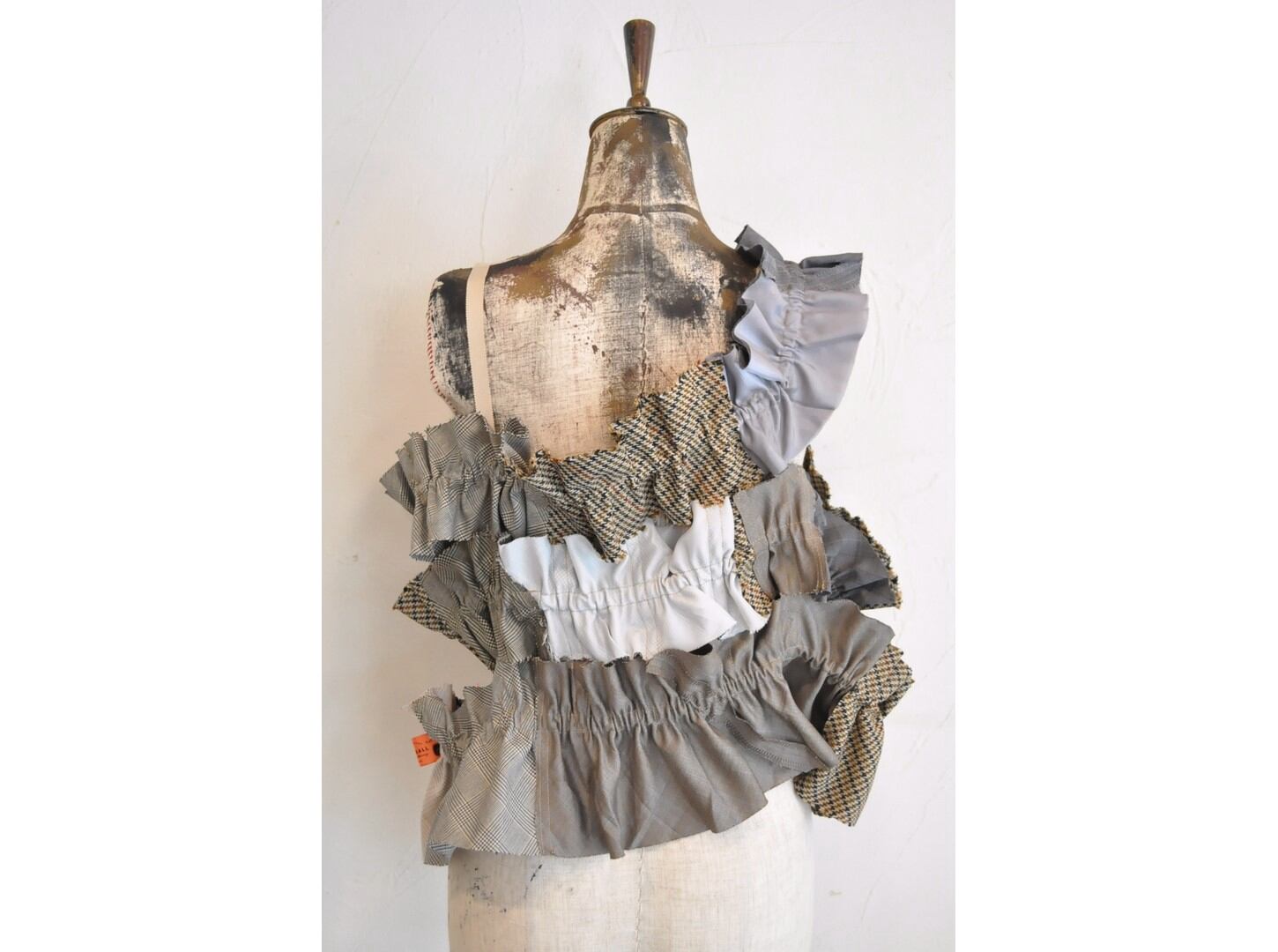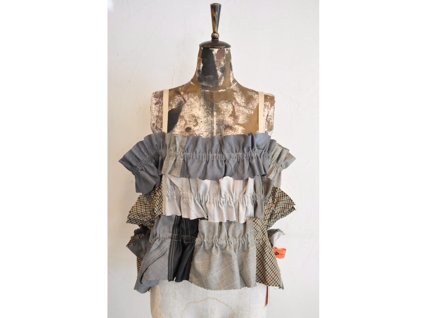 ●古着のスーツパンツを解体し、パッチワークしたキャミソール。