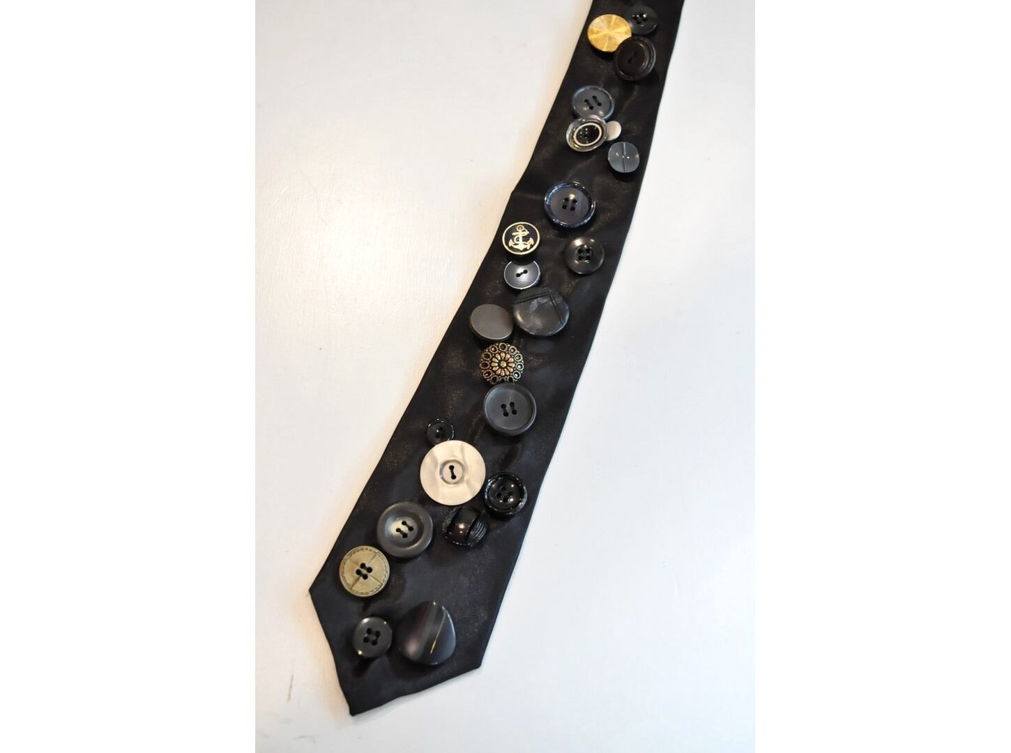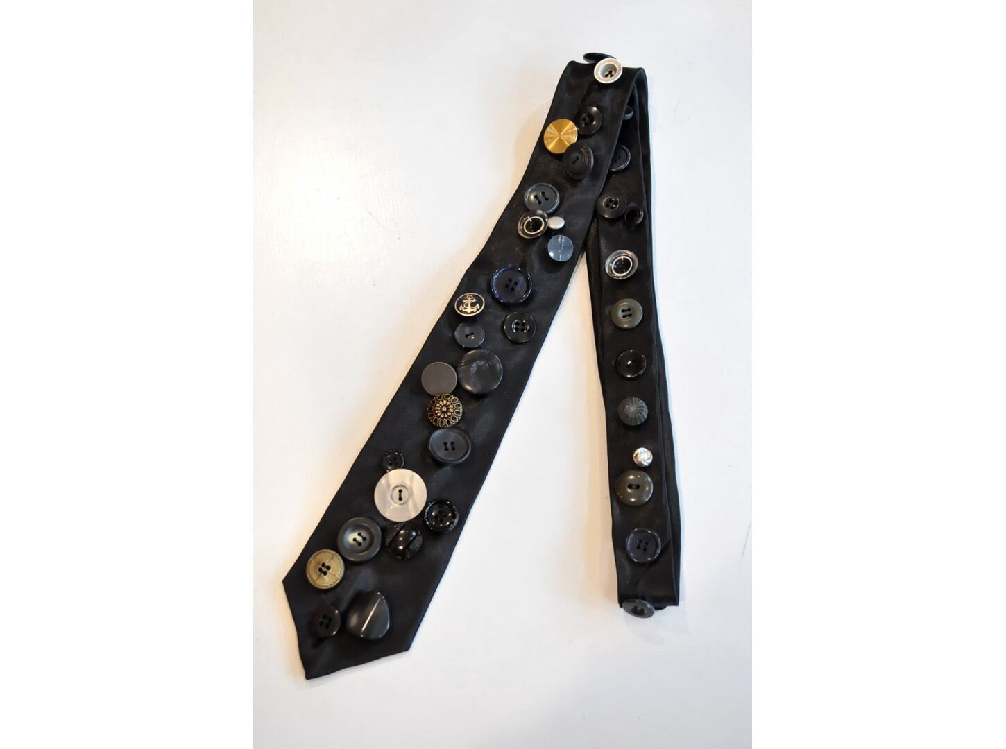 ●ヴィンテージやミリタリーのボタンなど様々なパーツを贅沢に、且つ、ふんだんに散りばめた一点物のネクタイ。