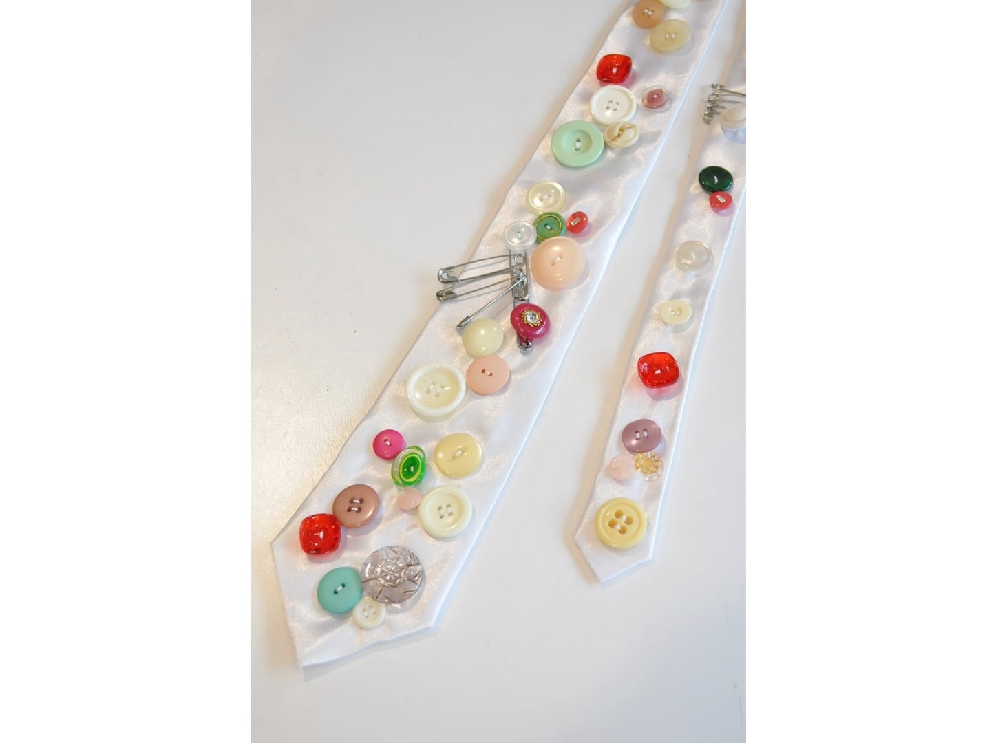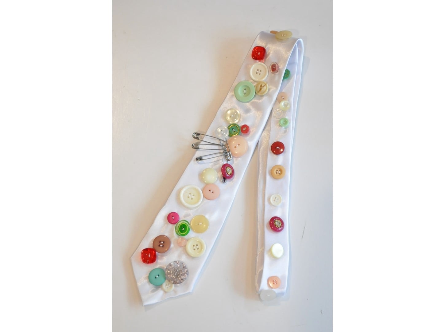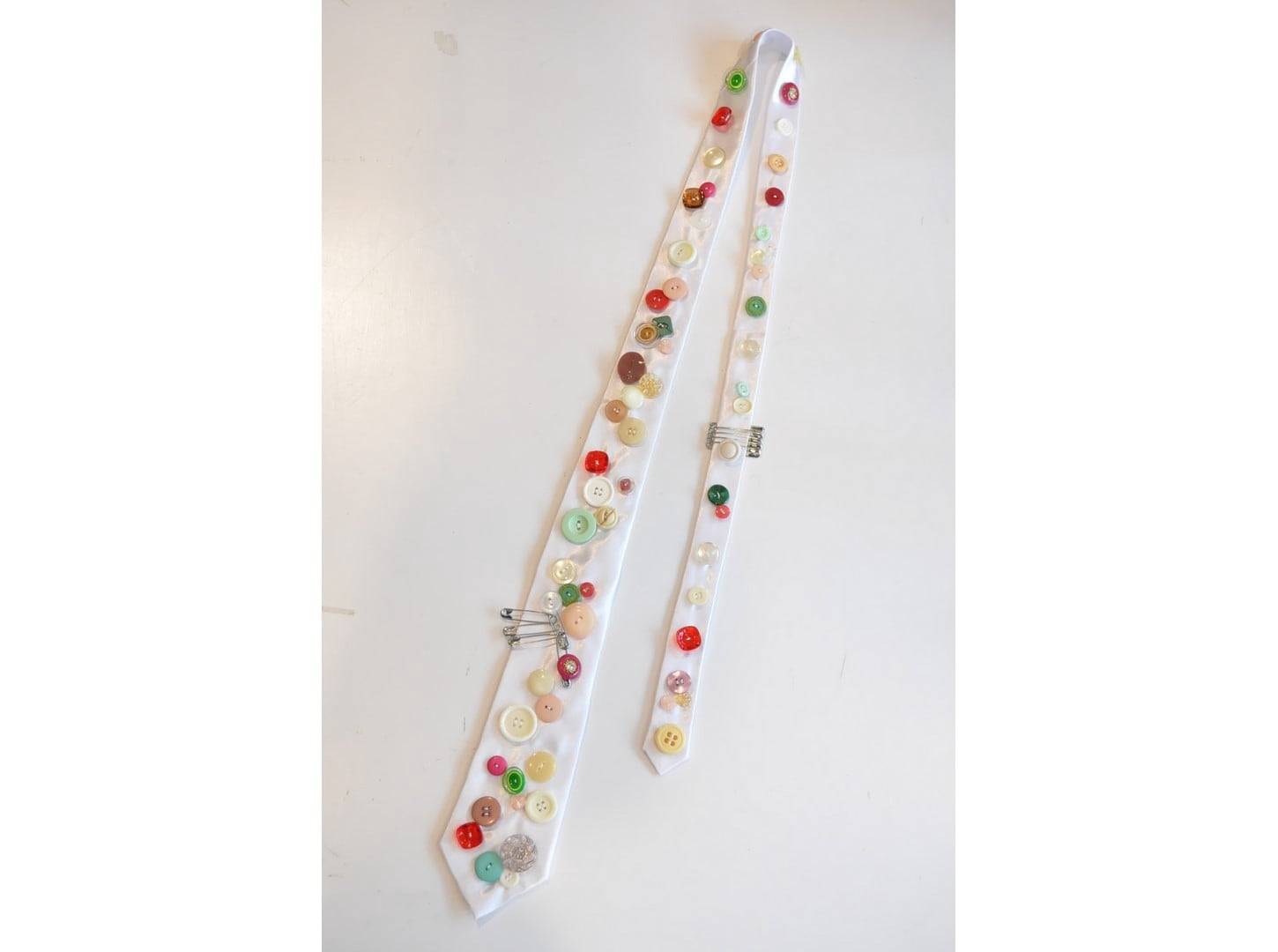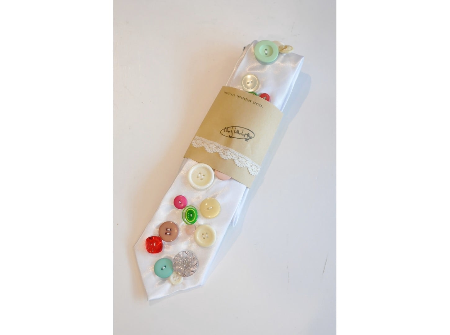 ●ヴィンテージやミリタリーのボタンなど様々なパーツを贅沢に、且つ、ふんだんに散りばめた一点物のネクタイ。