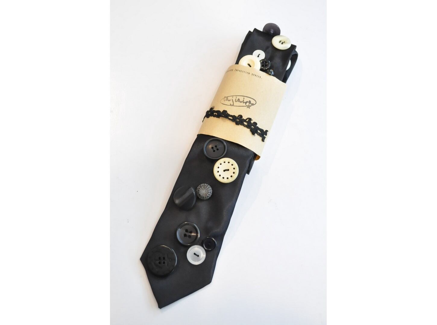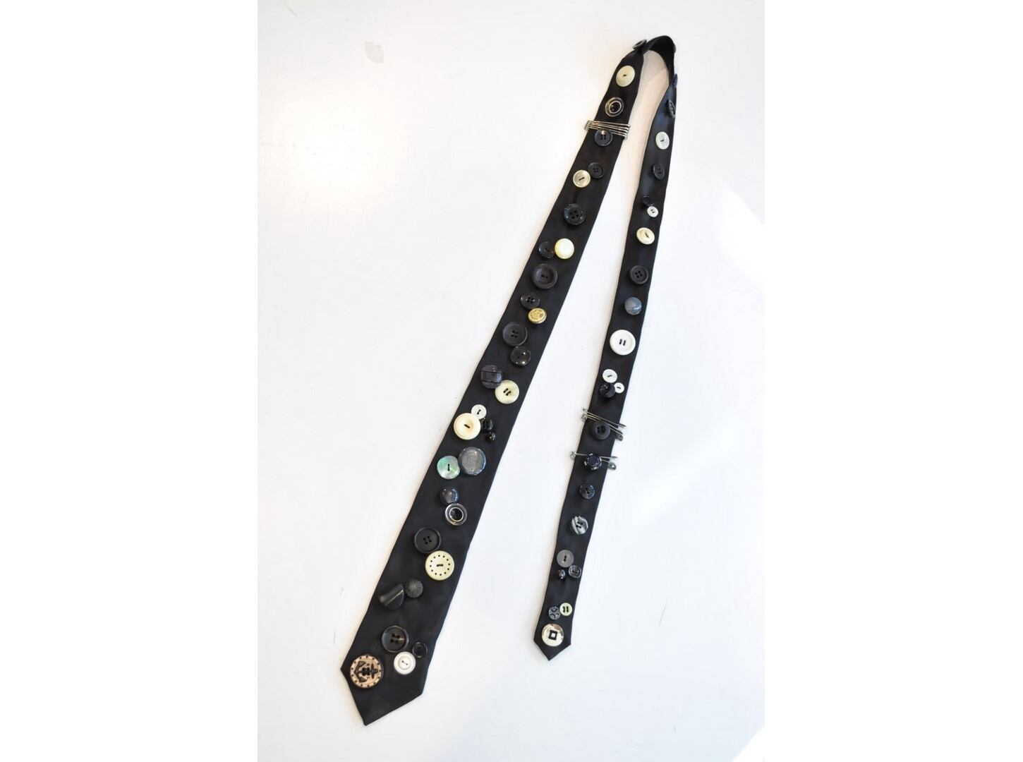 ●ヴィンテージやミリタリーのボタンなど様々なパーツを贅沢に、且つ、ふんだんに散りばめた一点物のネクタイ。